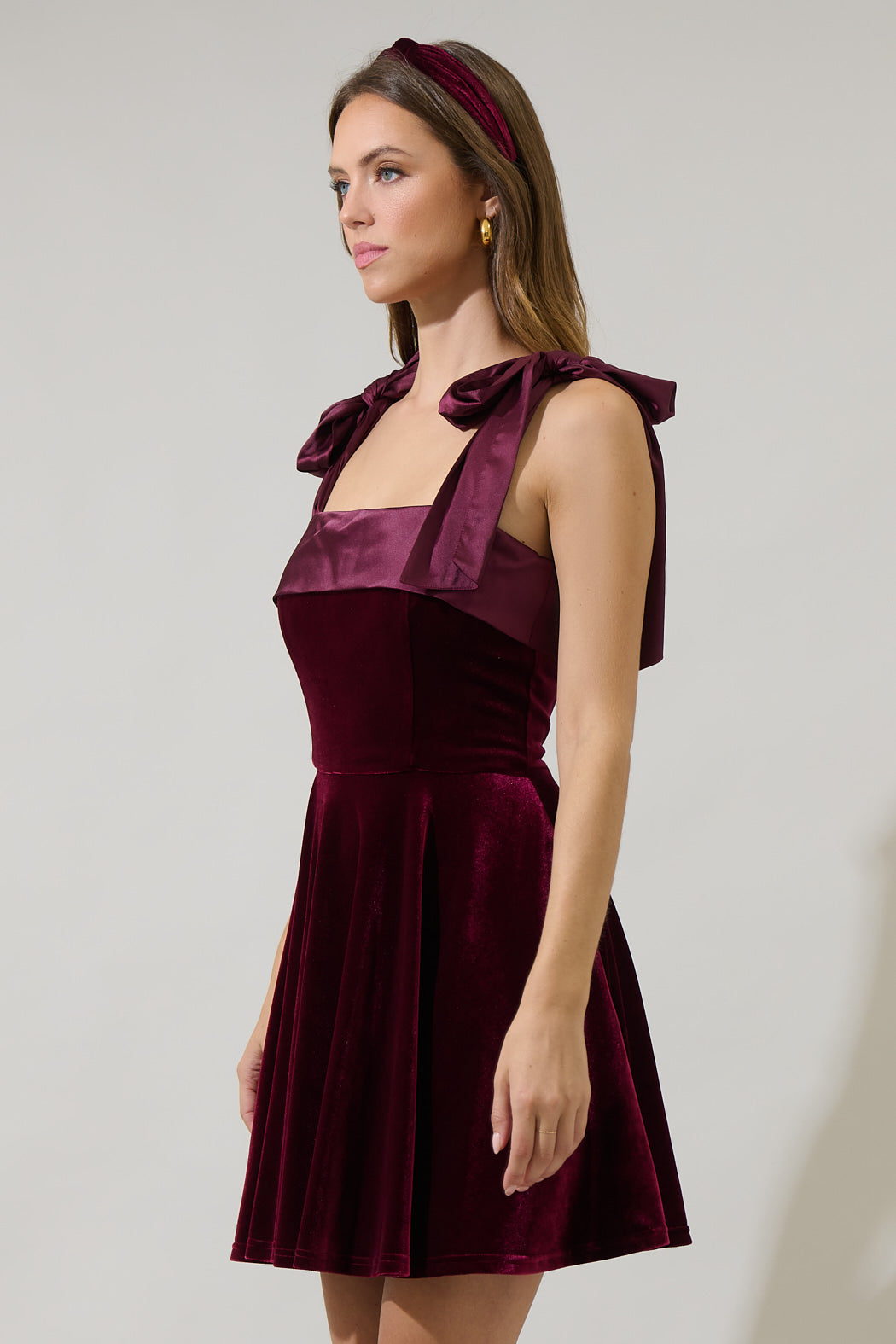 The simplest things can become the prettiest, for example the Adison Bow Flounce Mini Dress. Shoulder tying bows frame a straight neckline in the soft velvet mini dress. Pockets on each side with a sweep flounce skirt give it an extra touch. Pair it with gold or black heels to complete the look.