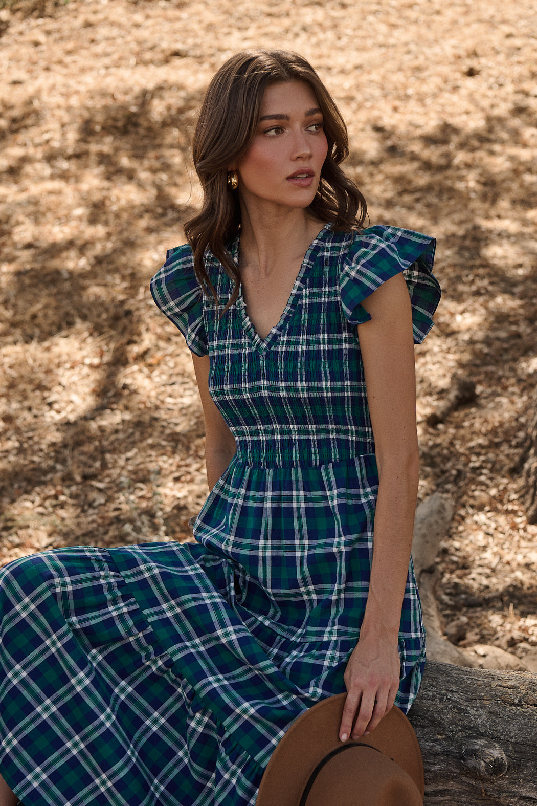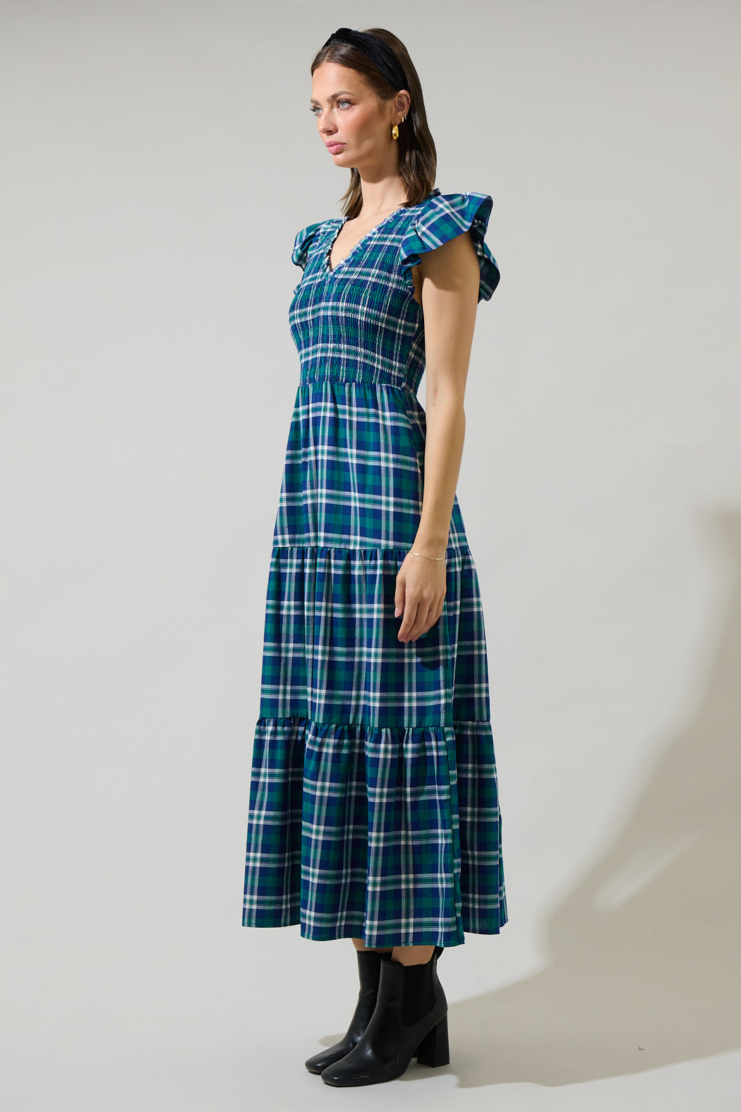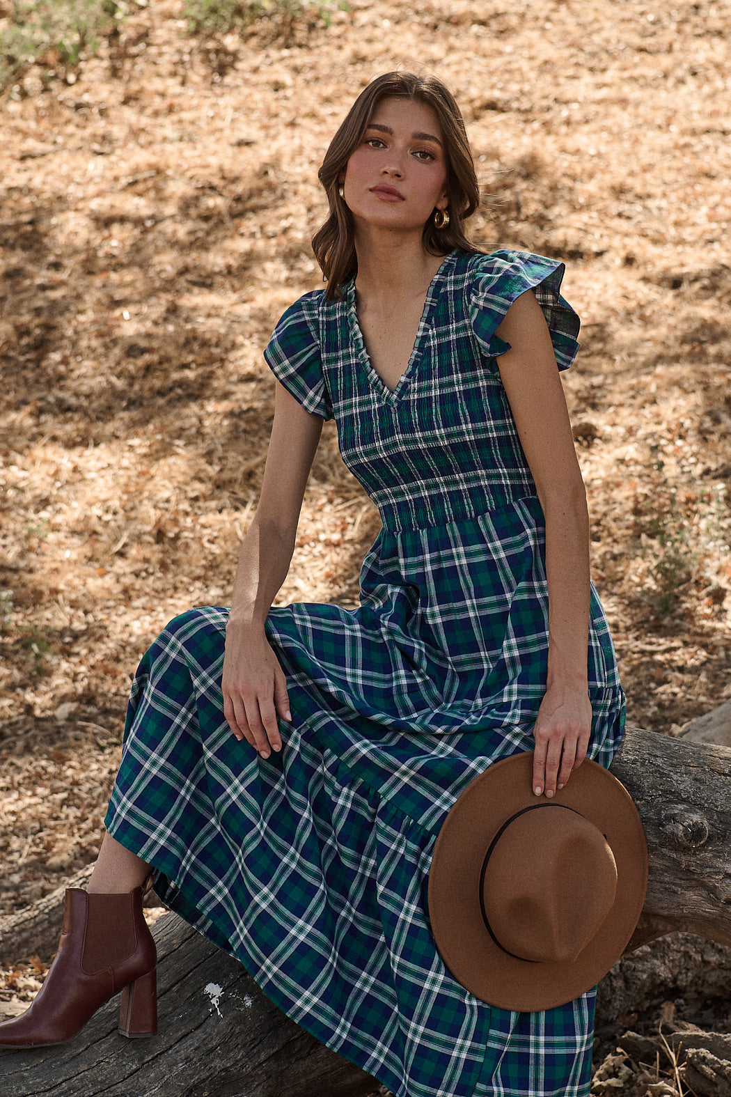 It's easy to find yourself totally loving the Buckley Plaid Sunfire Smocked Bodice Tiered Midi Dress. It features a flattering smocked bodice with a ruffle V neckline, framed by ruffle cap sleeves. It maintains a fit and flare silhouette with a tiered maxi skirt. Complete the look by pairing it with boots and simple accessories.