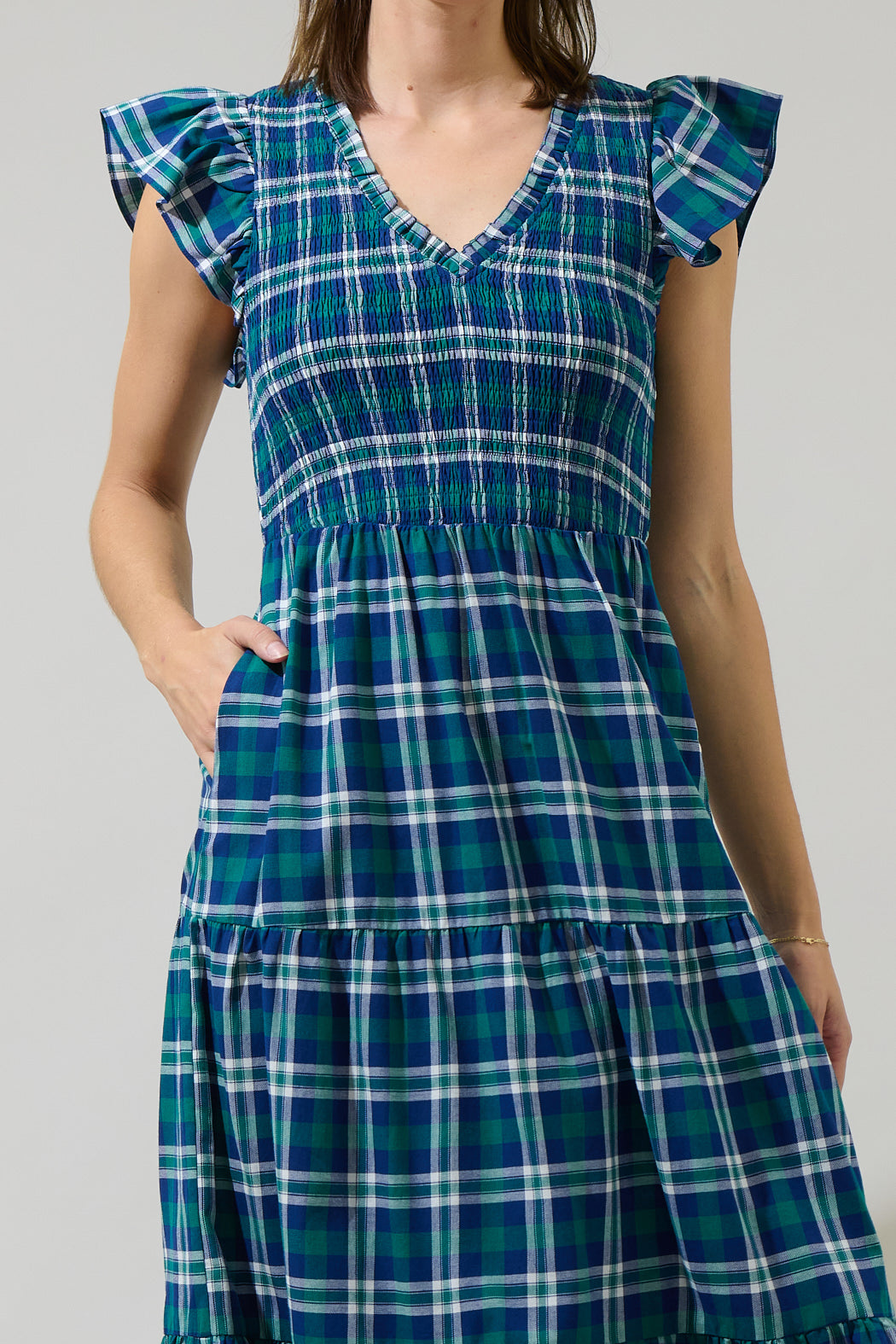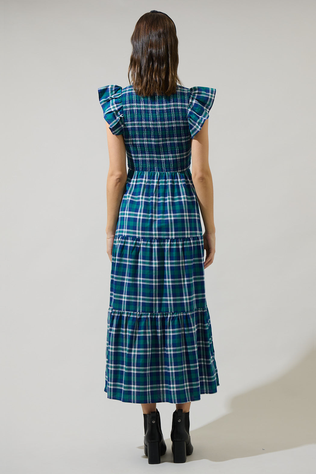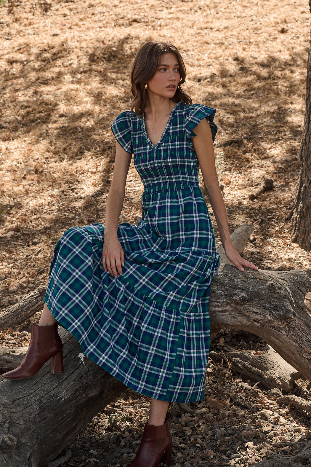 It's easy to find yourself totally loving the Buckley Plaid Sunfire Smocked Bodice Tiered Midi Dress. It features a flattering smocked bodice with a ruffle V neckline, framed by ruffle cap sleeves. It maintains a fit and flare silhouette with a tiered maxi skirt. Complete the look by pairing it with boots and simple accessories.