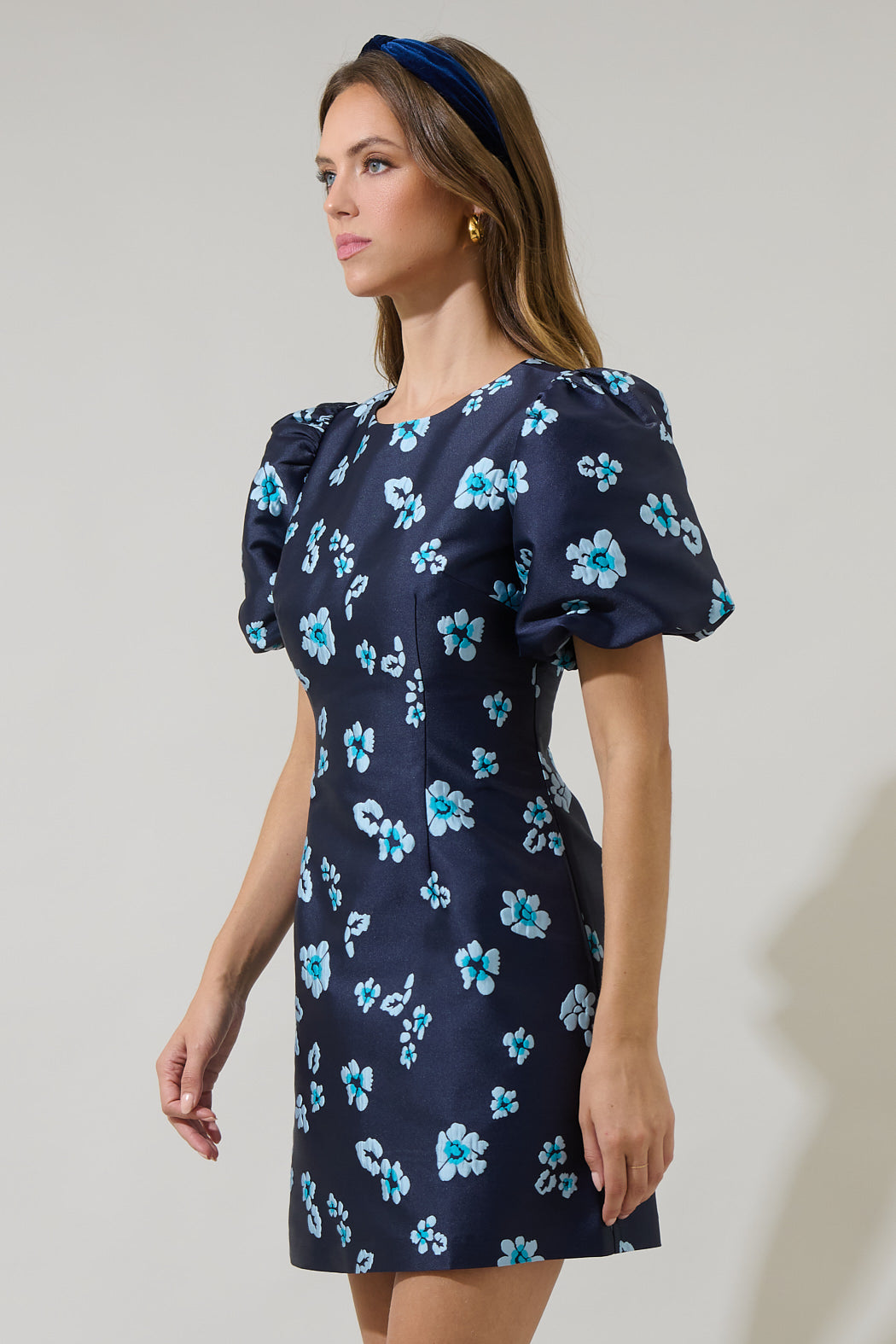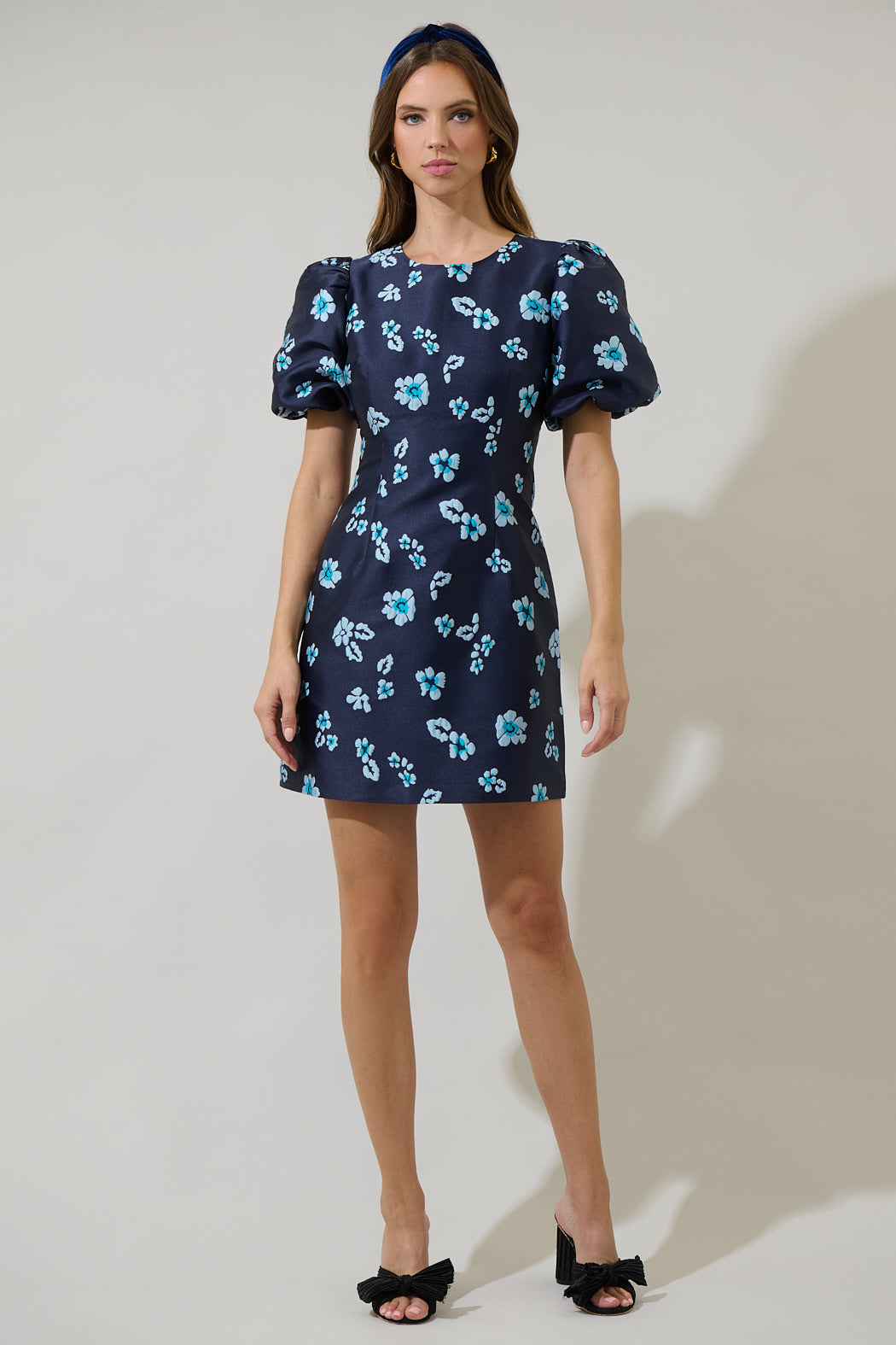 Make a stunning entrance with the Elissa Jacquard Floral Darce Puff Sleeve Mini Dress, anywhere you go. The dress maintains a sleek fit throughout the bodice and waist. Short puff sleeves make a voluminous pretty touch to this mini dress. Ideal for weddings, semi formal gatherings, or wherever your heart desires.