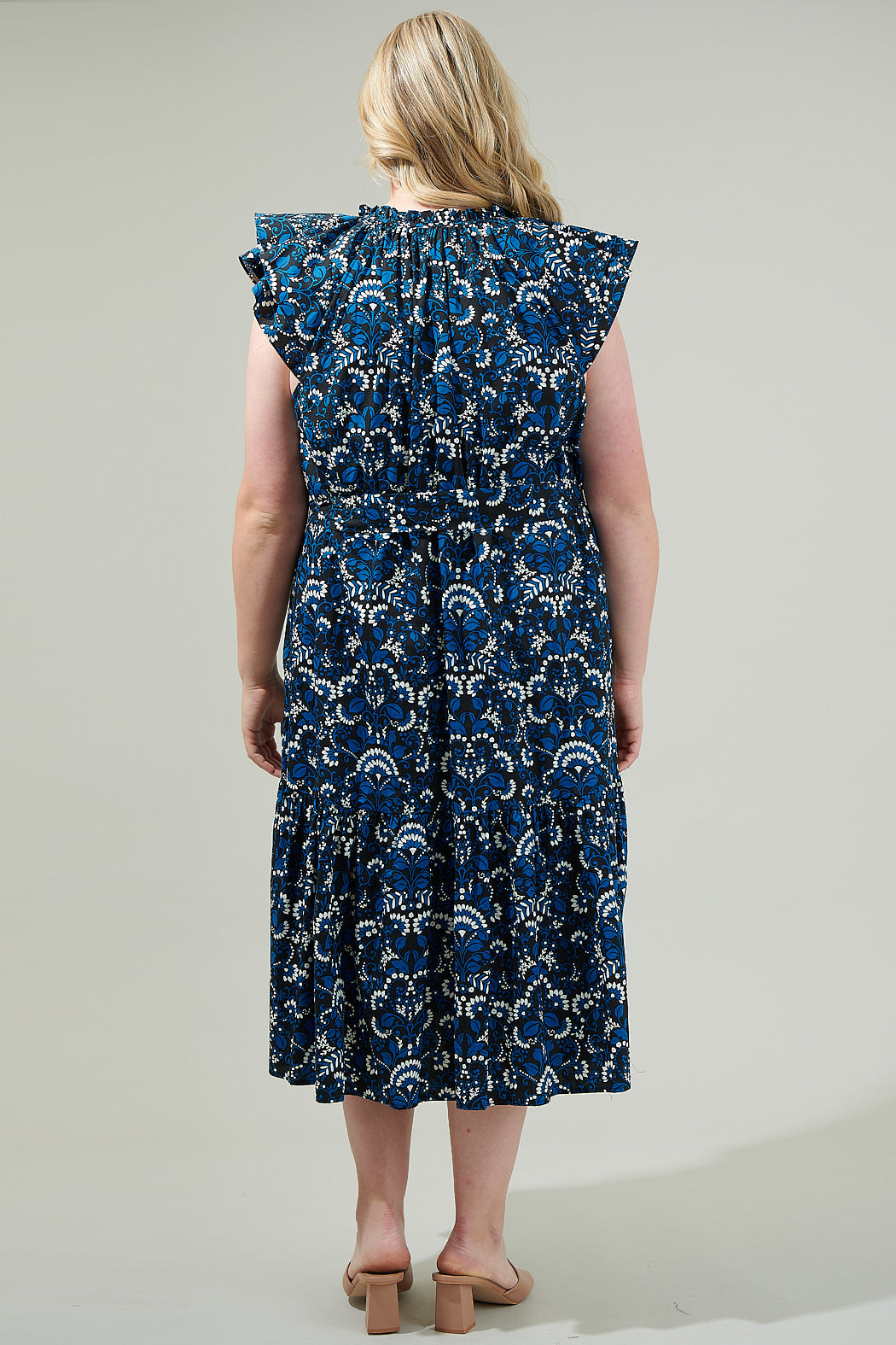 Get groovin' in the Etta Floral Charlotte Button Midi Dress! This dress is double the fun with a belt tie around the waist, split neckline, and button up detail in the front. The breezy maxi skirt, is tiered. Pair it up with heels and gold jewelry to finish off your look!