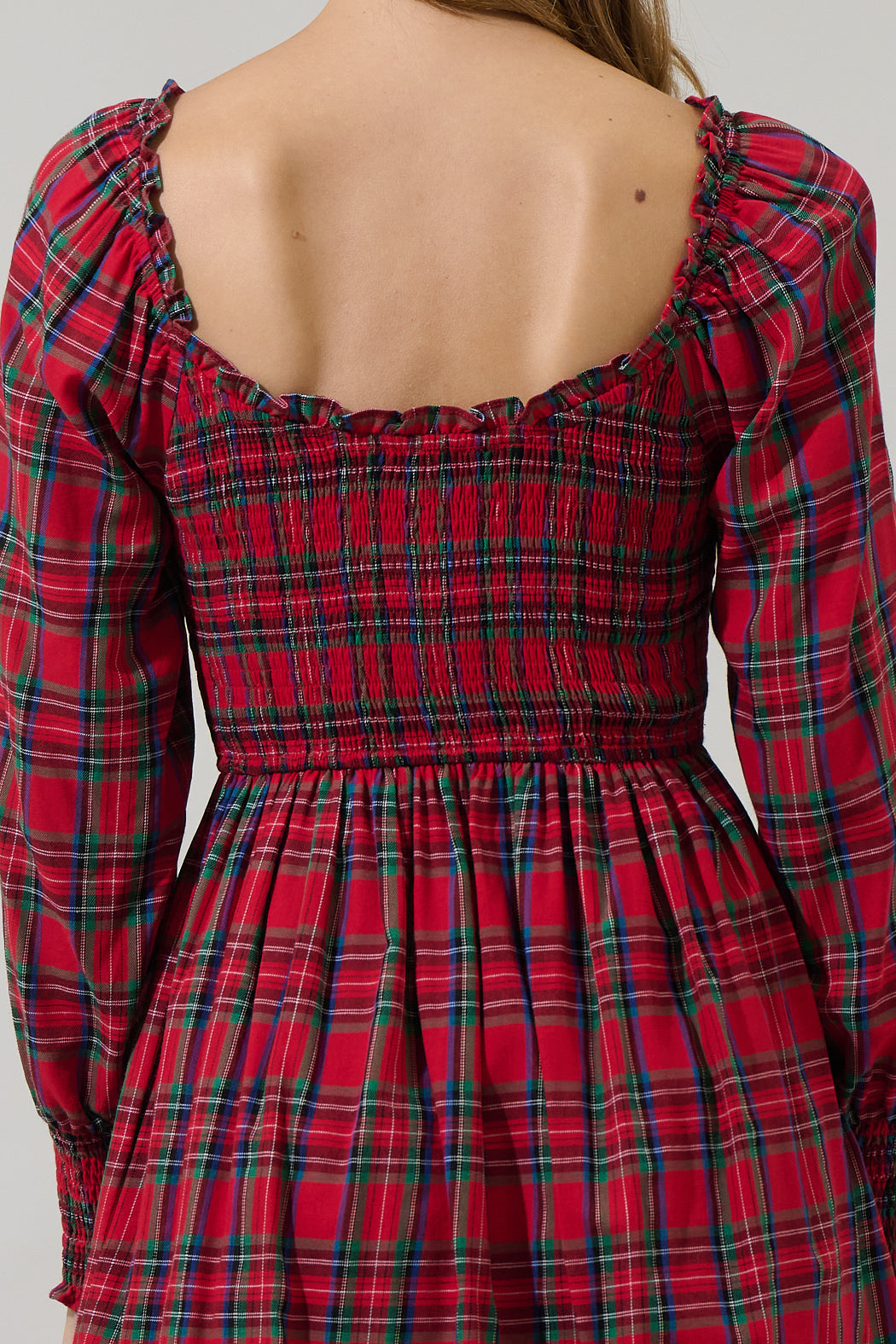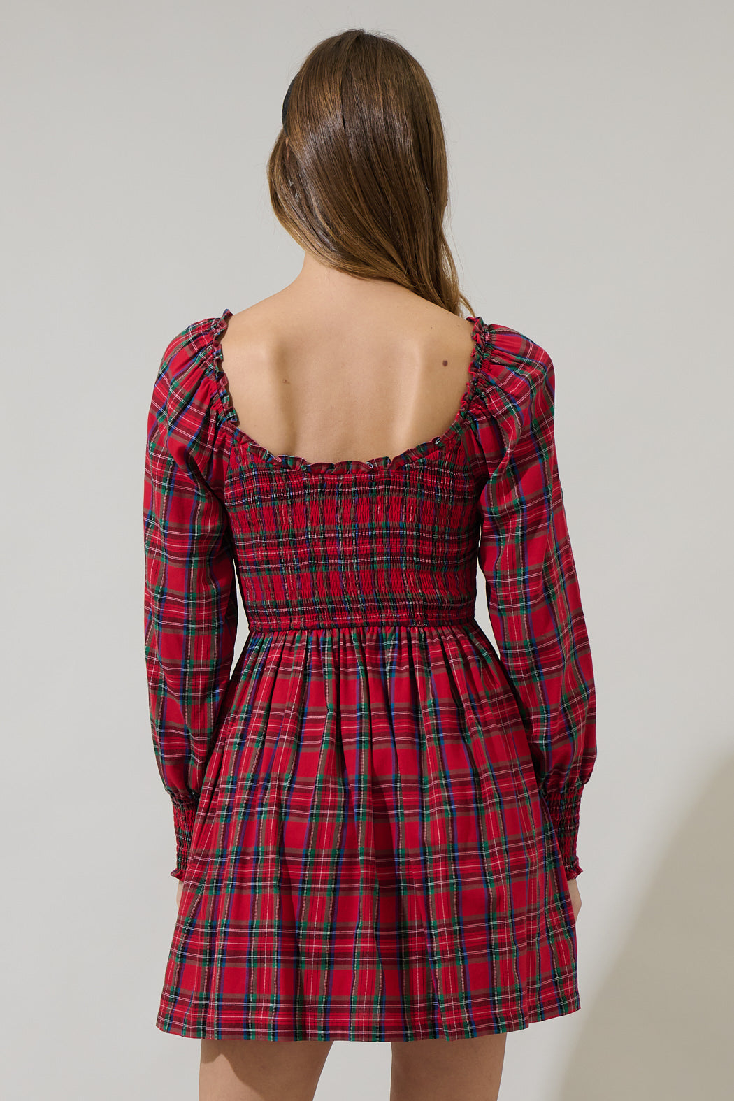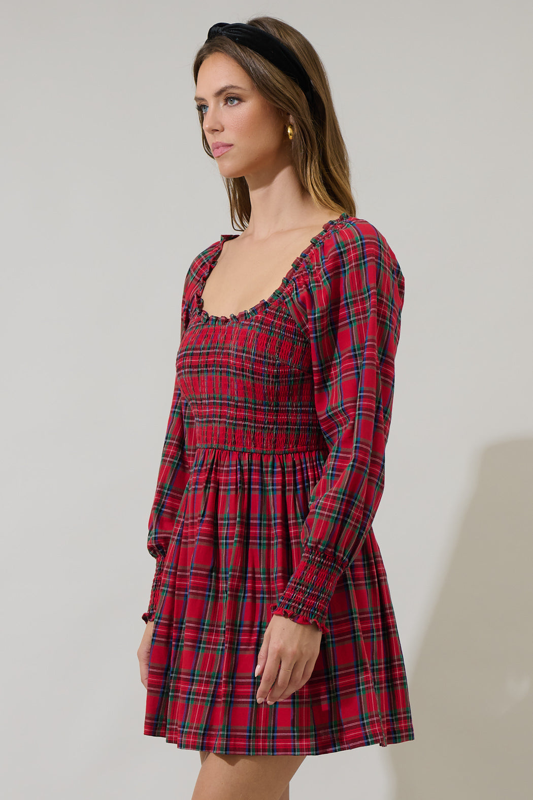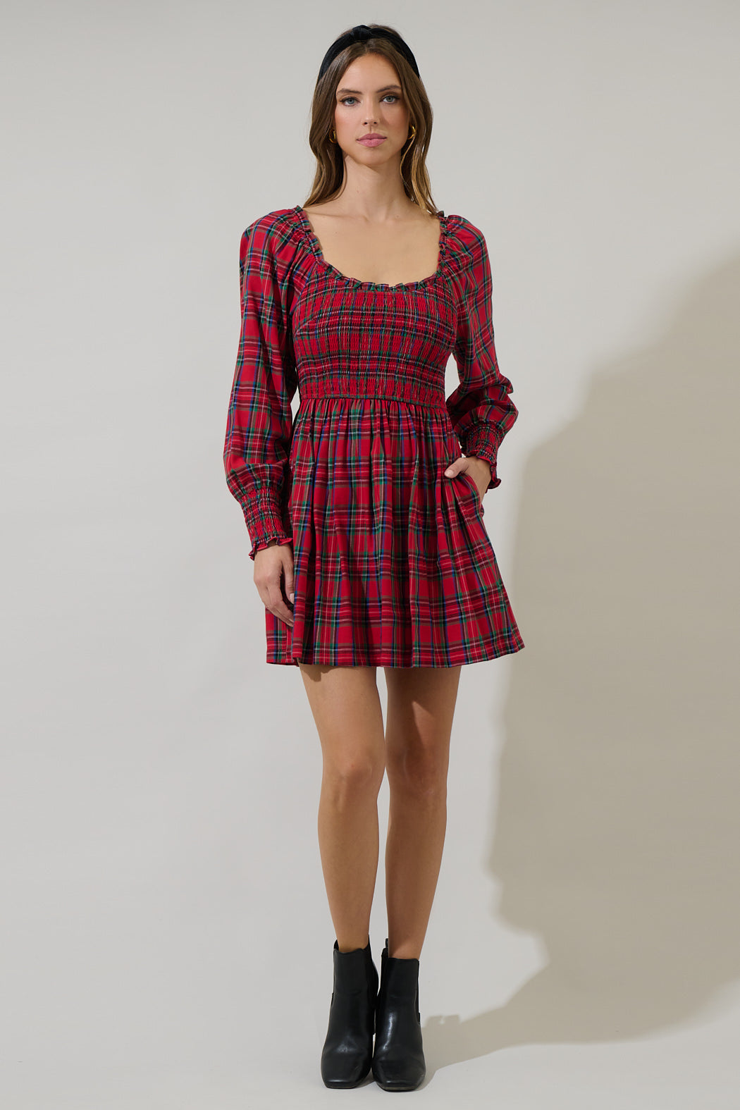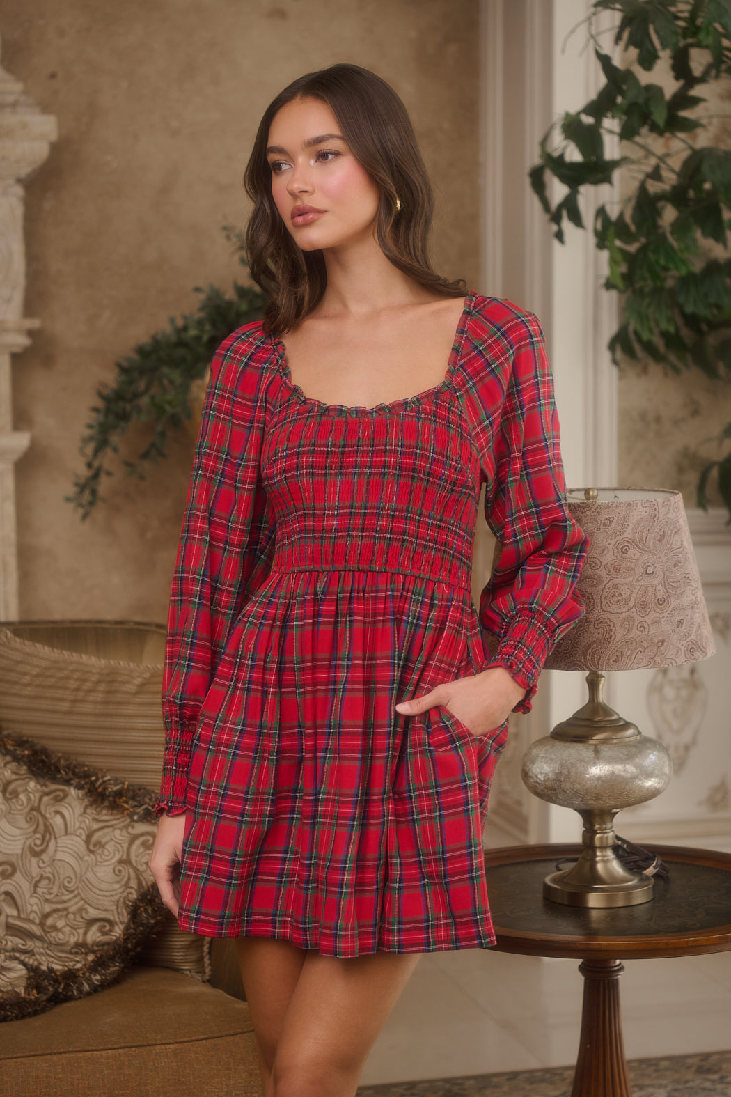 Your favorite boots and the Jace Plaid Kourt Smocked Mini Dress will always be a charming combo. It features long sleeves with smocked cuffs and a round neckline in the front plus the back with ruffle trims. It has pockets on each side and ends in a mini length.