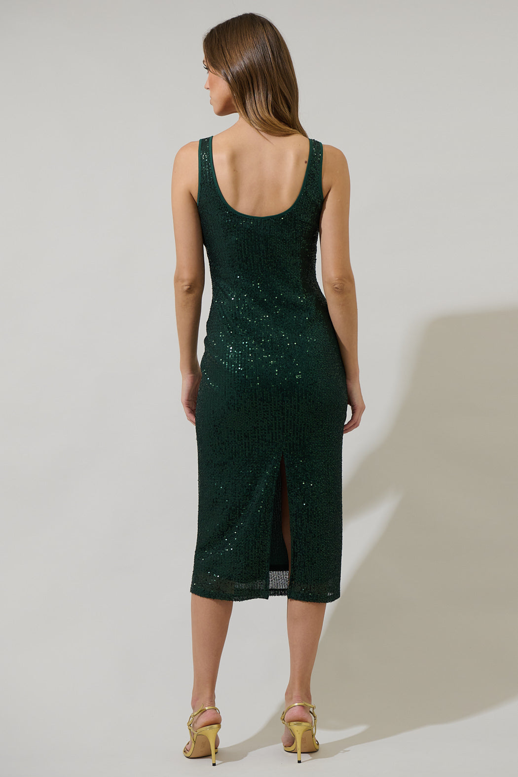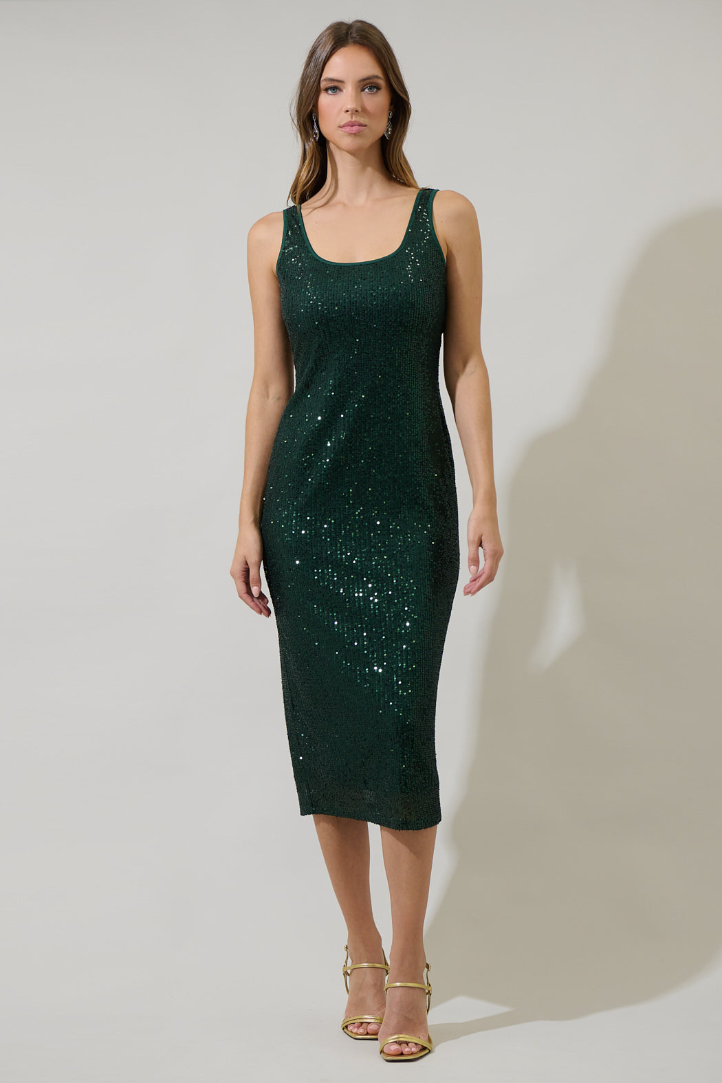She’s shinning! The Kamari Sequin Liv Tank Midi Dress will have you looking your absolutely best. It features a deep scoop neckline in the back with an invisible zipper and slit. It creates a sleeveless style with tank top shoulder and ends in a midi length. Pair it with simple accessories.