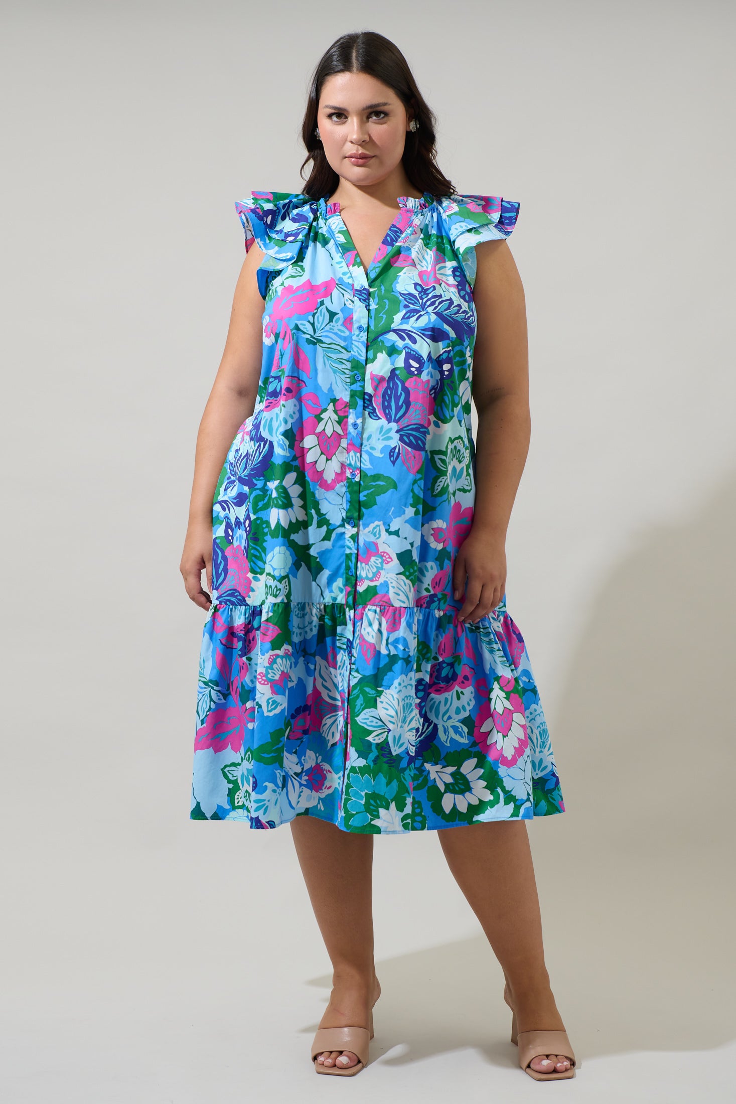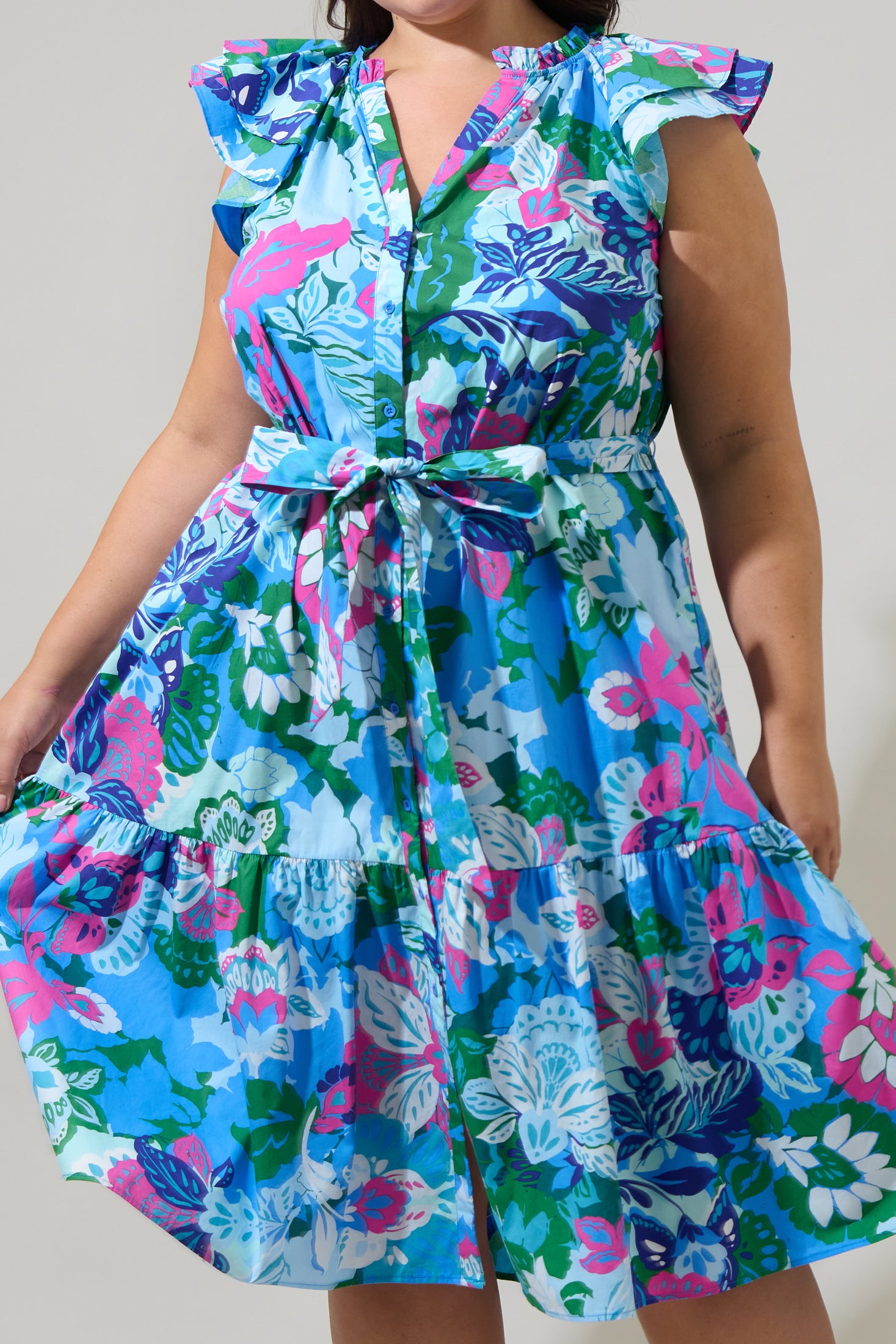 Get ready to be admired for looking good in the Lavera Floral Charlotte Button Midi Dress. It features a split neckline and a flare bodice, framed by short cap sleeves. A belt wrap around the waist and secure at the back, followed by a button-down design. Pair it up with sandals and a summer hat.