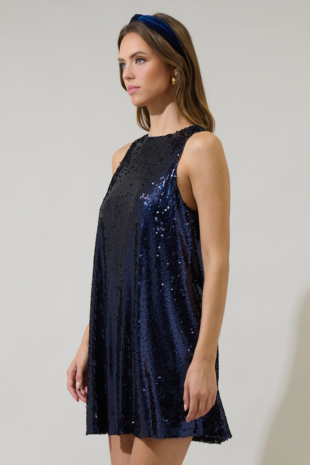 Enjoy a night out with your girls and the Liviana Sequin Sleeveless Mini Dress. It features a round neck followed by a sleeveless look and keyhole. Pair the look with your high heels and accessories for a next-level style.