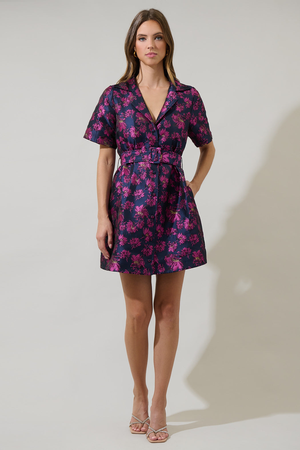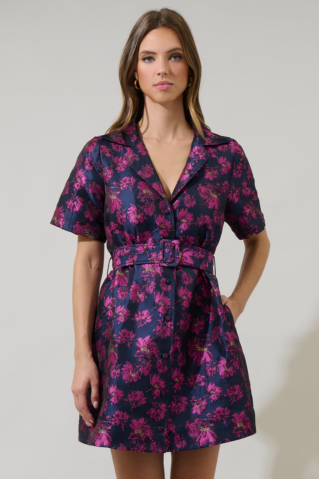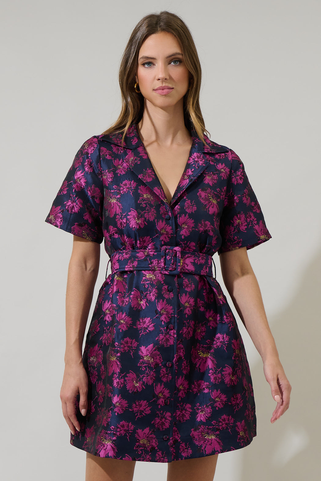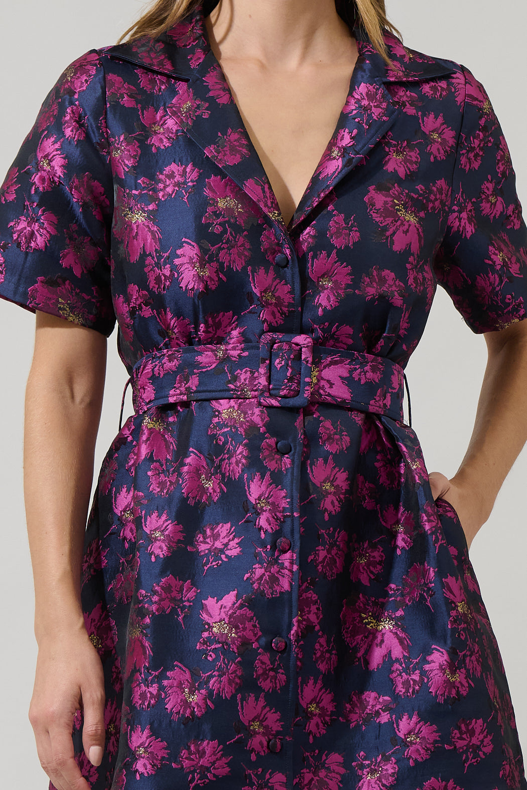 Perfect for many occasions, the Lorna Floral De Soto Collared Maxi Dress is sure to become a staple in your wardrobe! A collared neckline falls into a split neckline with a button up front. belt around the waist can be adjusted. Pair with peep toe heels and a clutch for a perfect look!