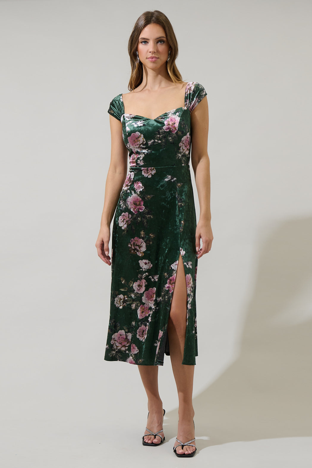 You’ll be absolutely adored everywhere you go in the Sharon Floral Dixon Convertible Strap Midi Dress. A soft velvet floral design with convertible straps that can be worn both on or off the shoulders. It frames a sweetheart neckline, along with princess seams to create a sleek bodice. Pair it with heels for a glamours look.