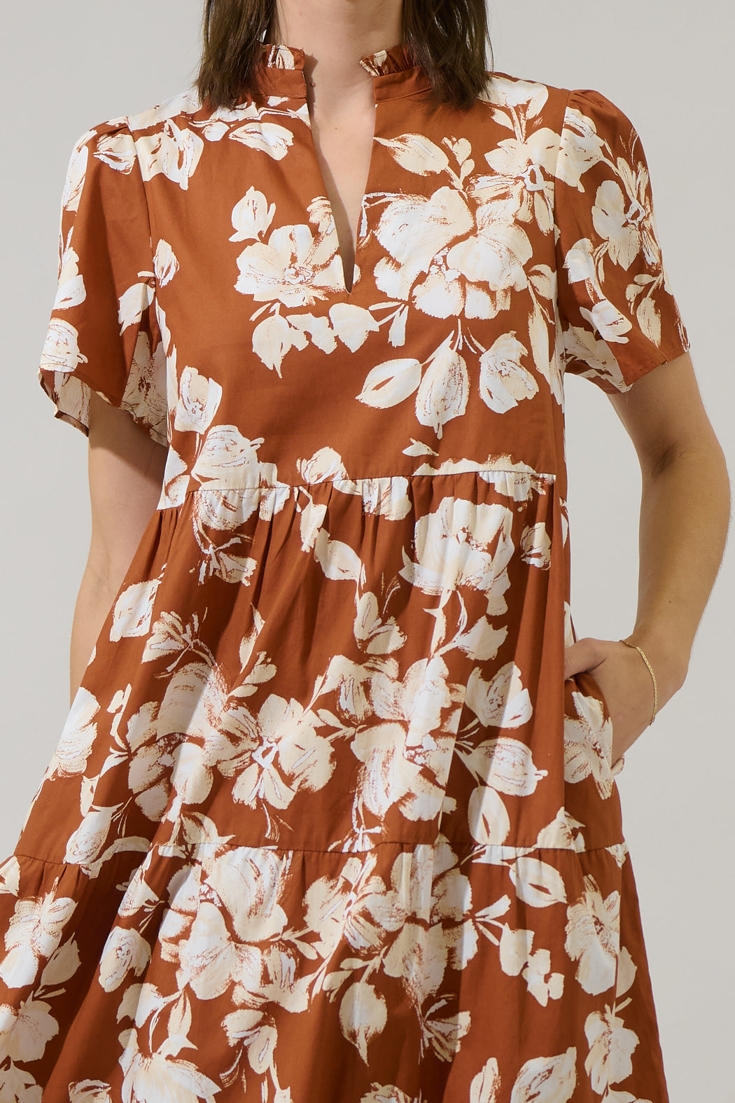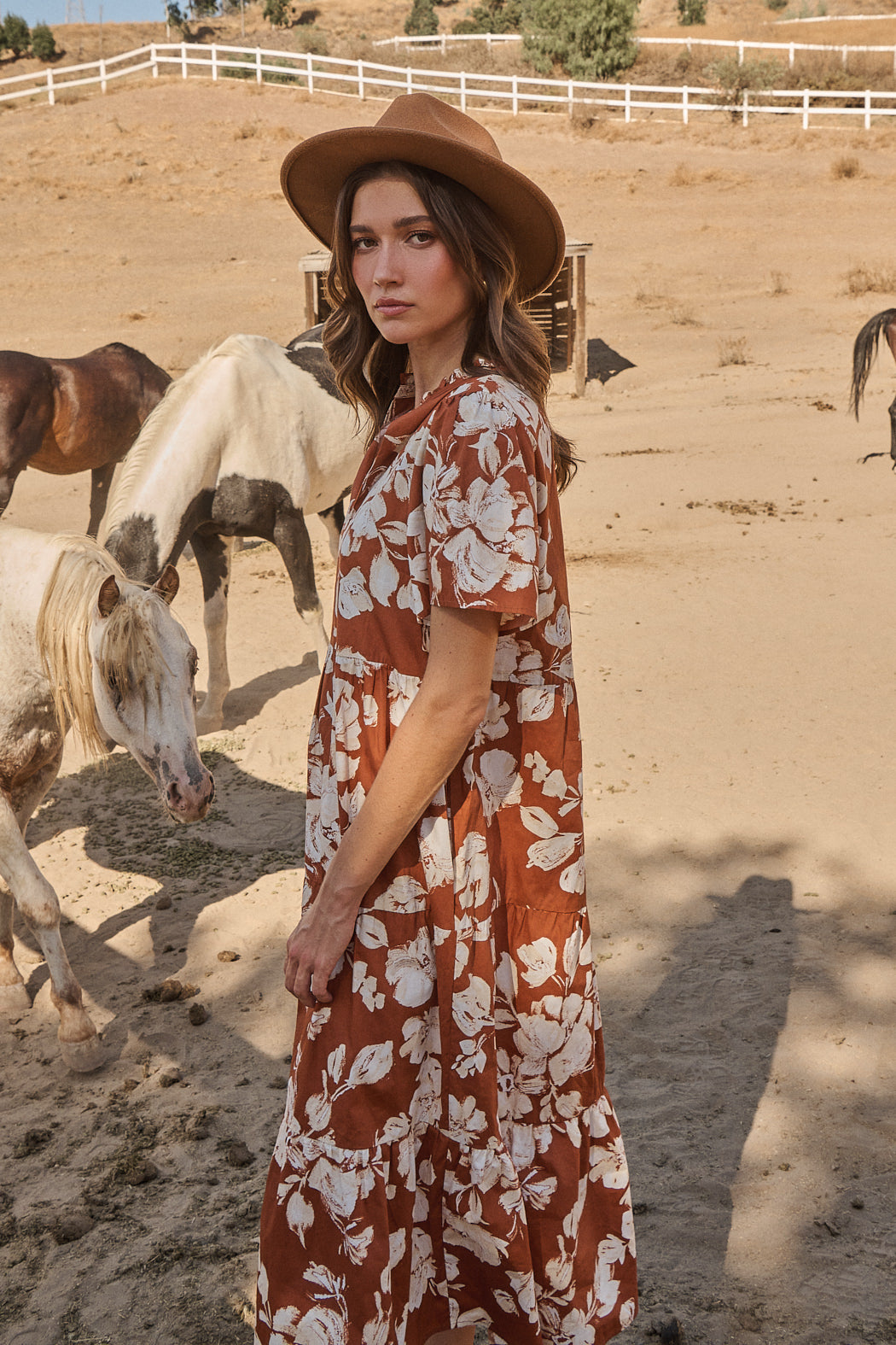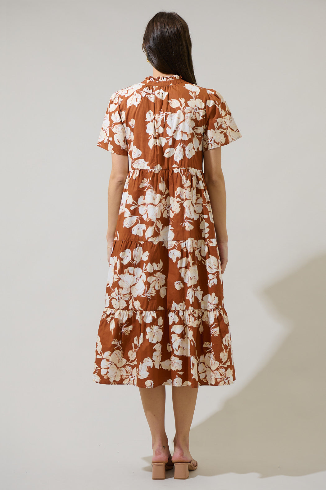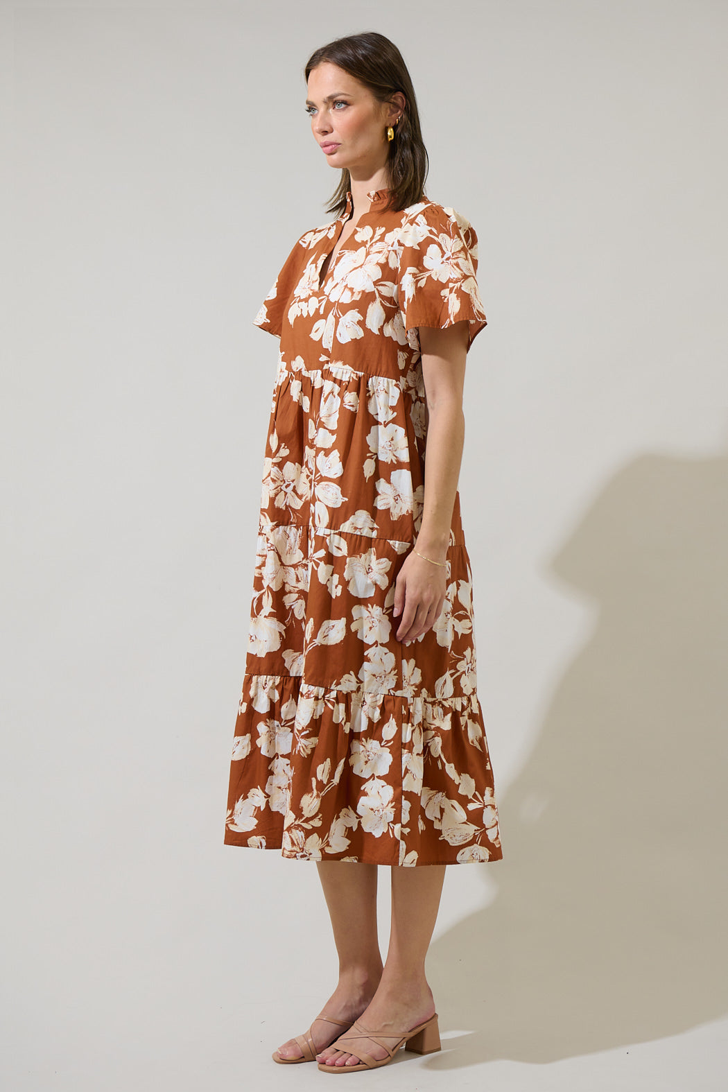 Looking for a cute and blossoming dress? Perfect timing because the Surrey Floral Amayah Tiered Midi Dress is just what you want. Lightweight and airy fabric shapes this darling dress that starts with short sleeves that frame a split neckline and a tiered bodice with a flowy look. Pockets on each side. You can style it with heels or any shoes of your choice.
