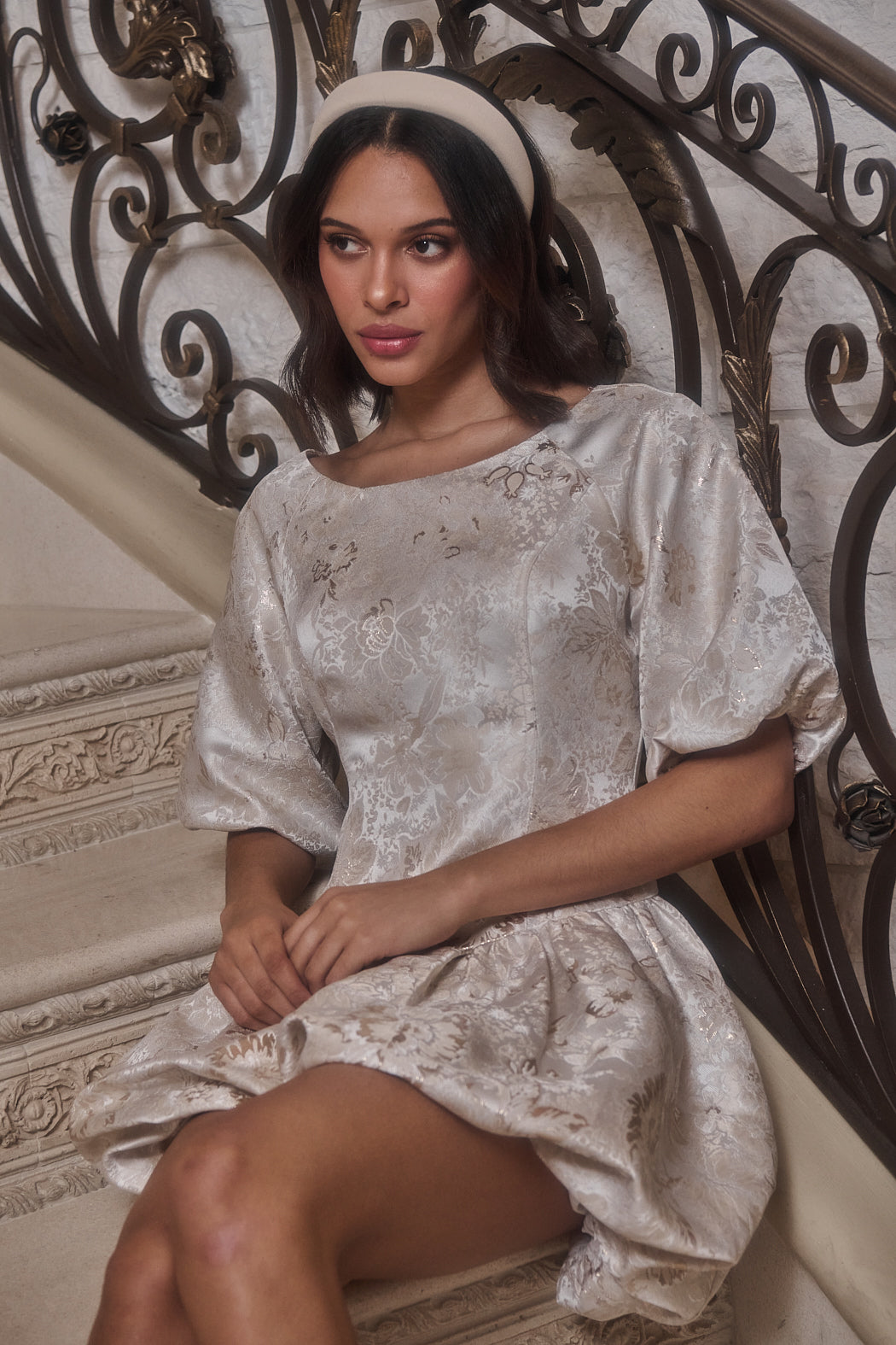 Zoe Jacquard Mila Bubble Sleeve Mini Dress