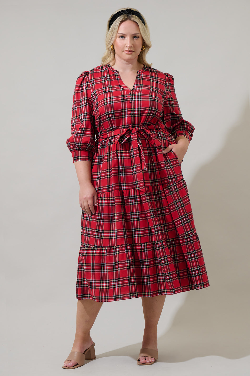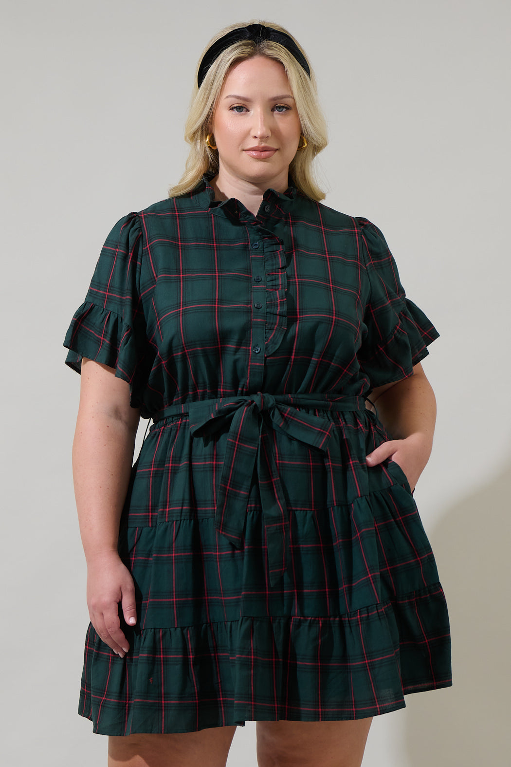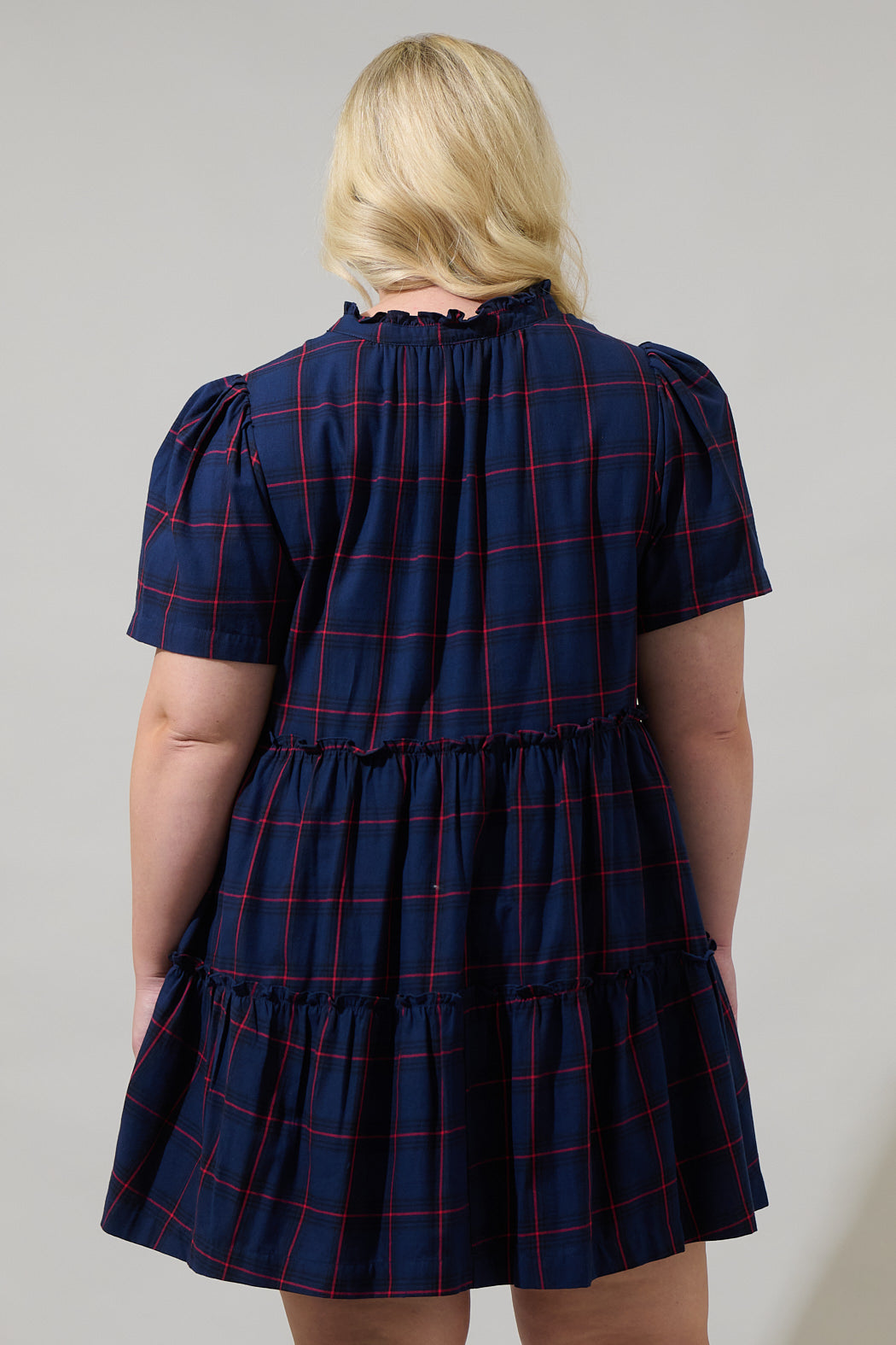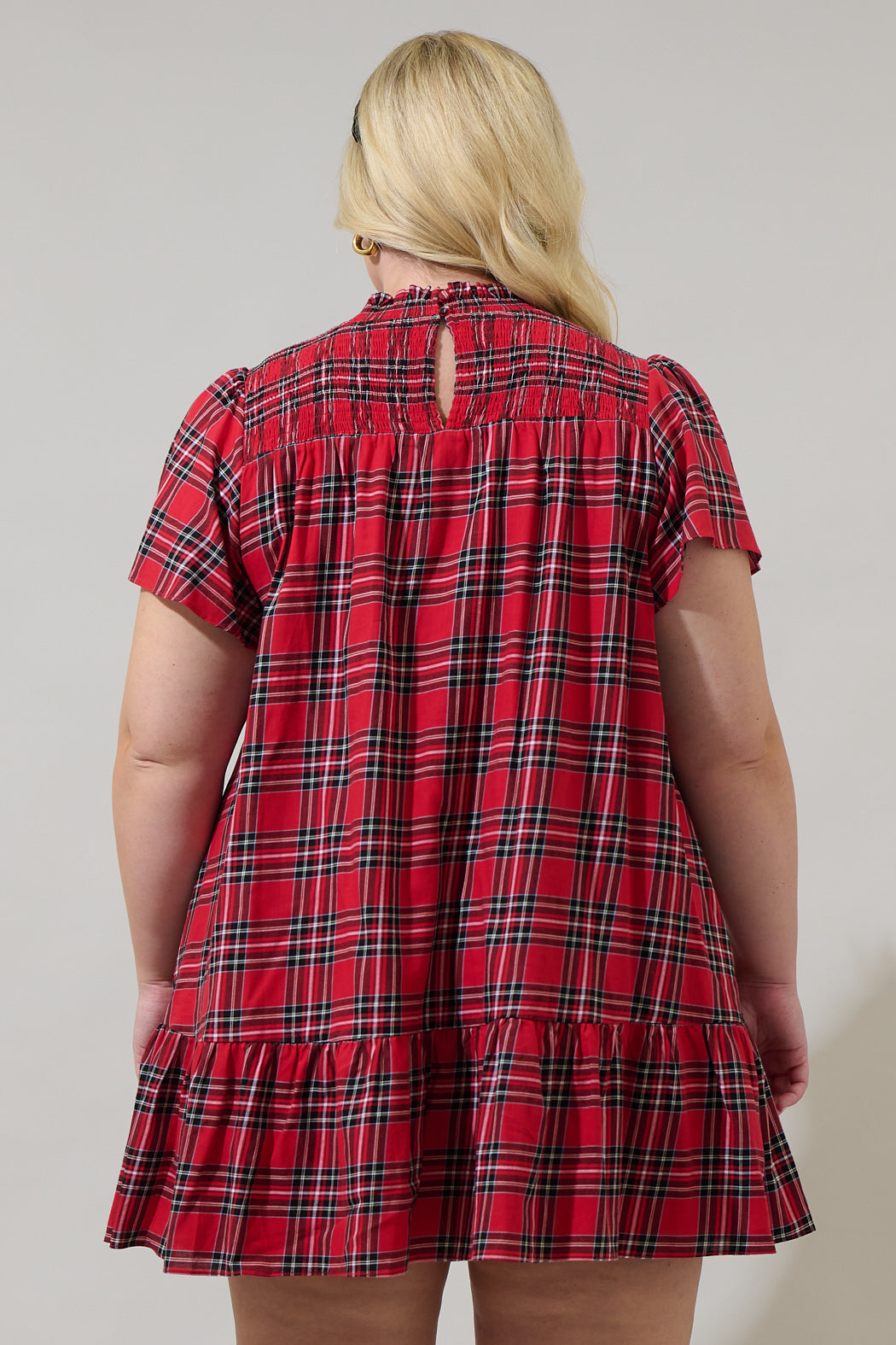 Holbrook Plaid Amelia Split Neck Babydoll Dress Curve