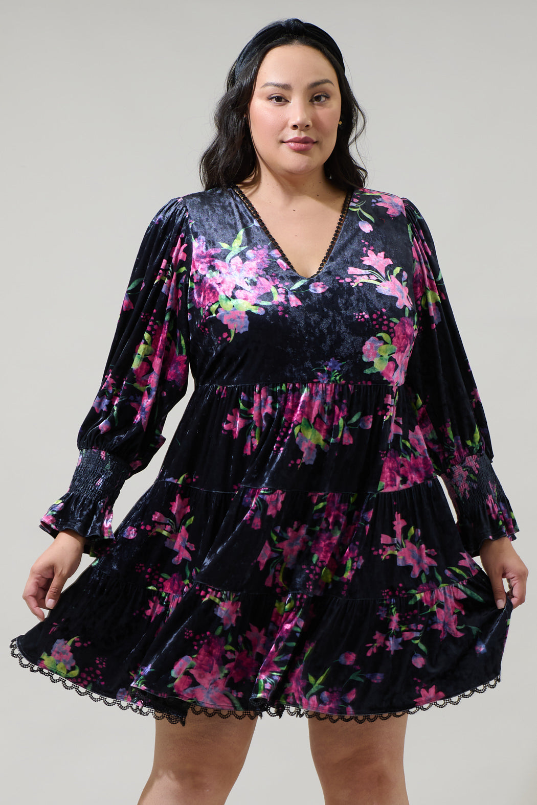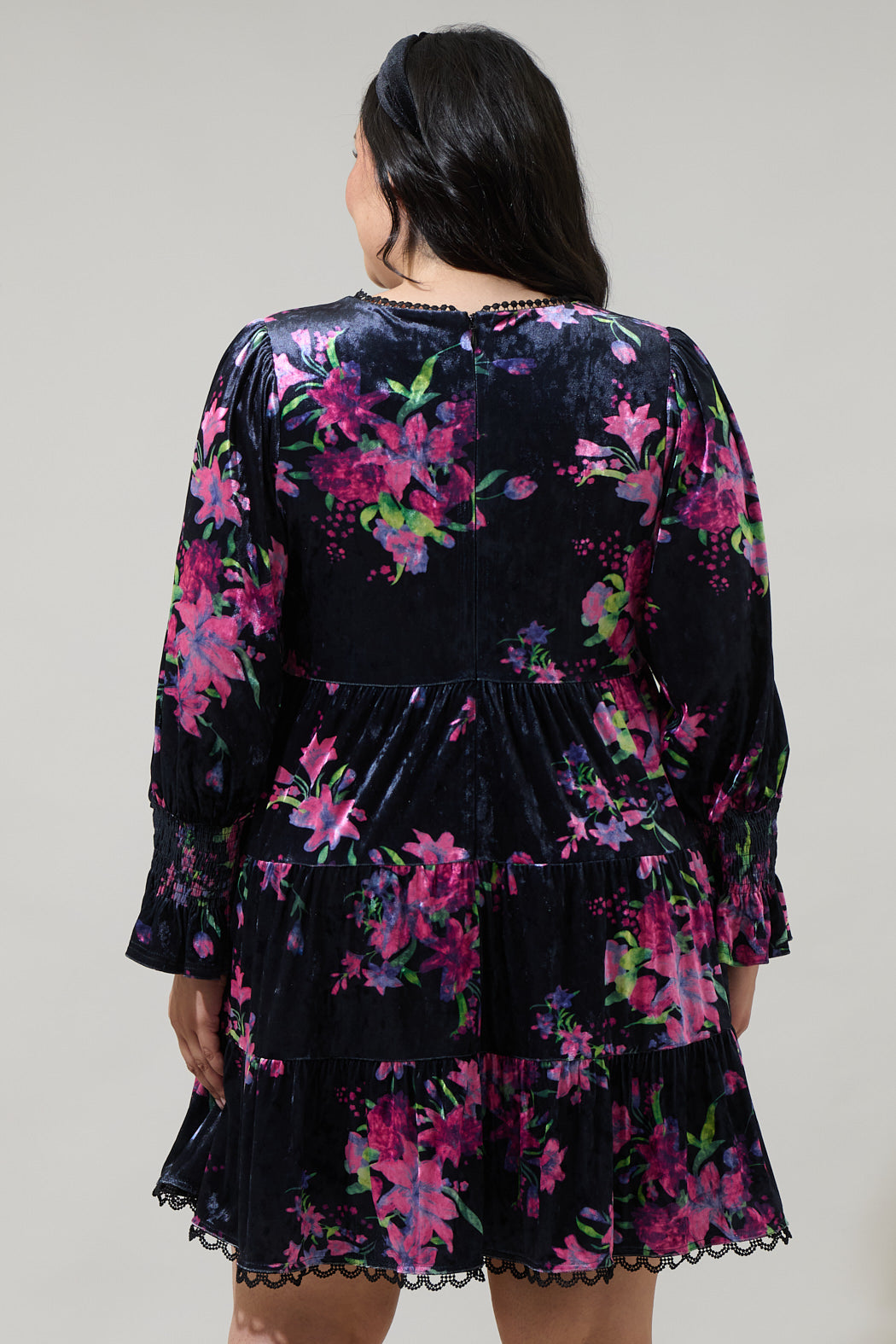 Tulda Floral Amari Velvet Tiered Mini Dress Curve