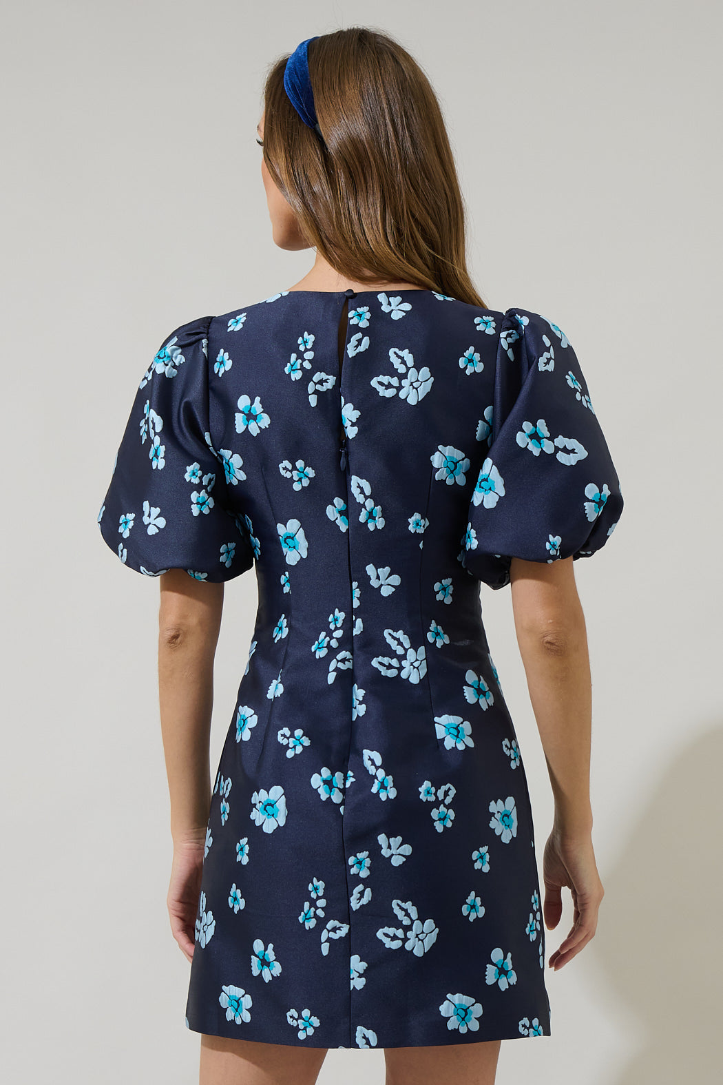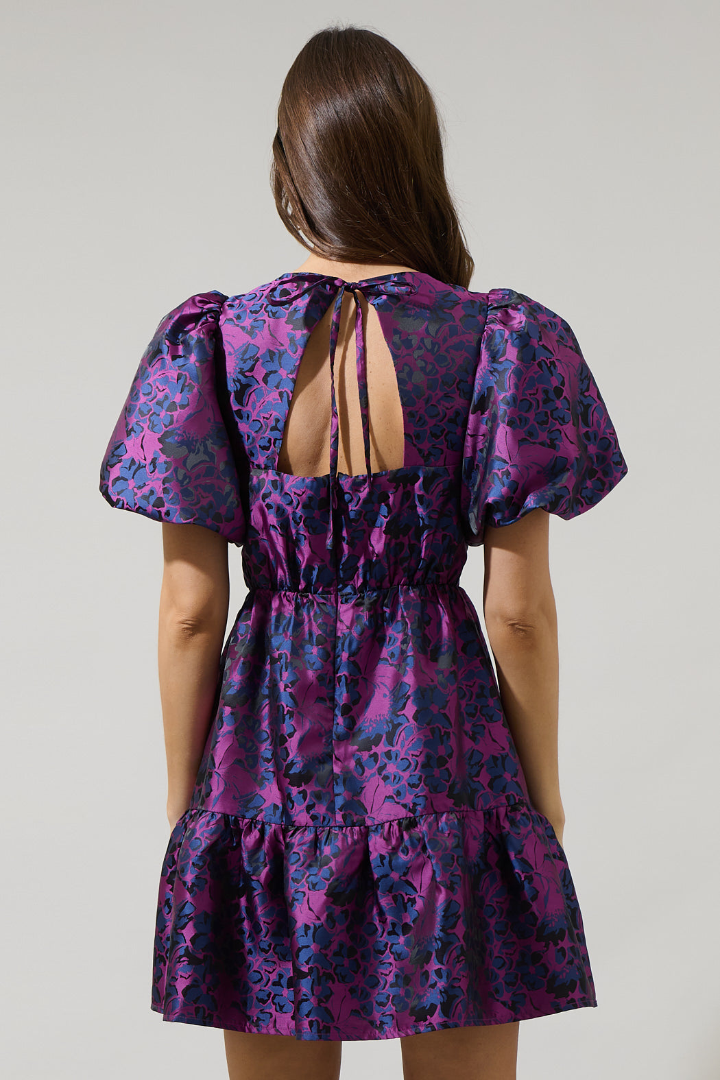 Elissa Jacquard Floral Darce Puff Sleeve Mini Dress