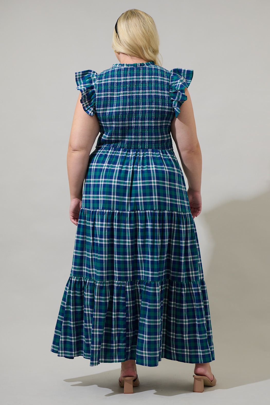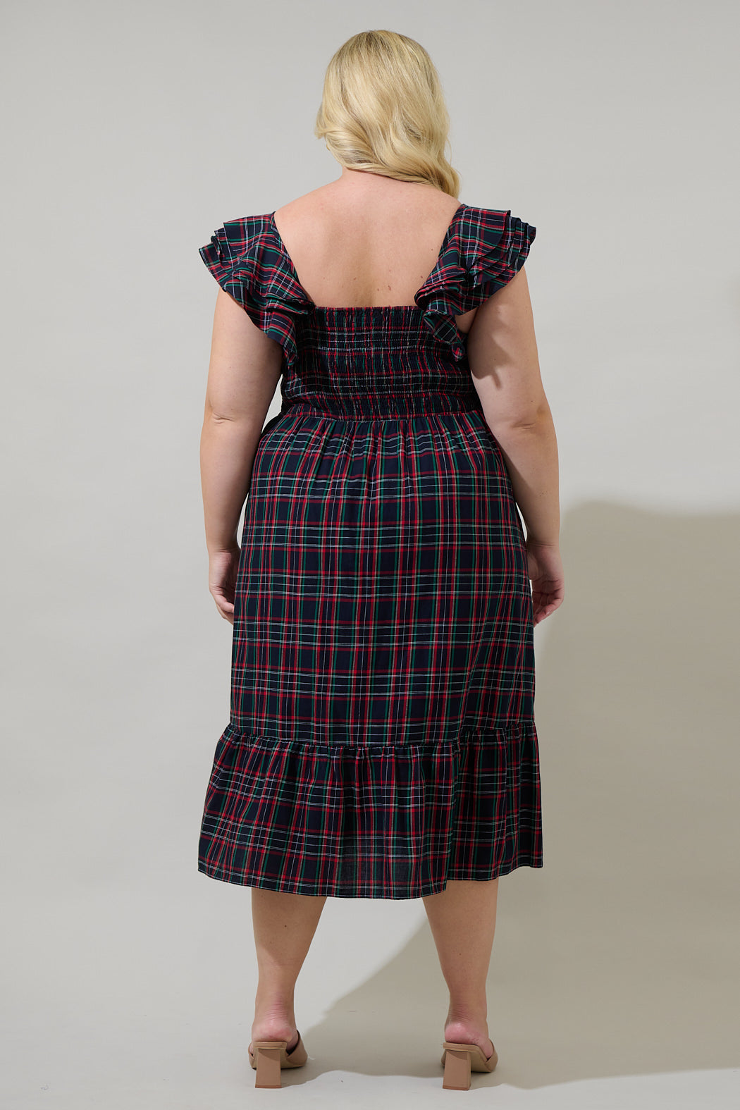 Chapman Plaid Girona Smocked Ruffle Midi Dress Curve