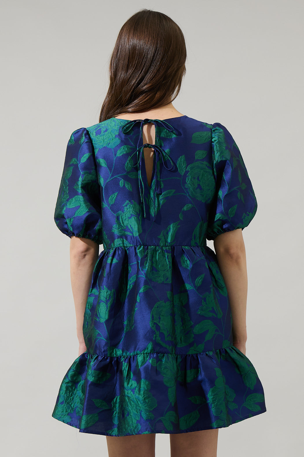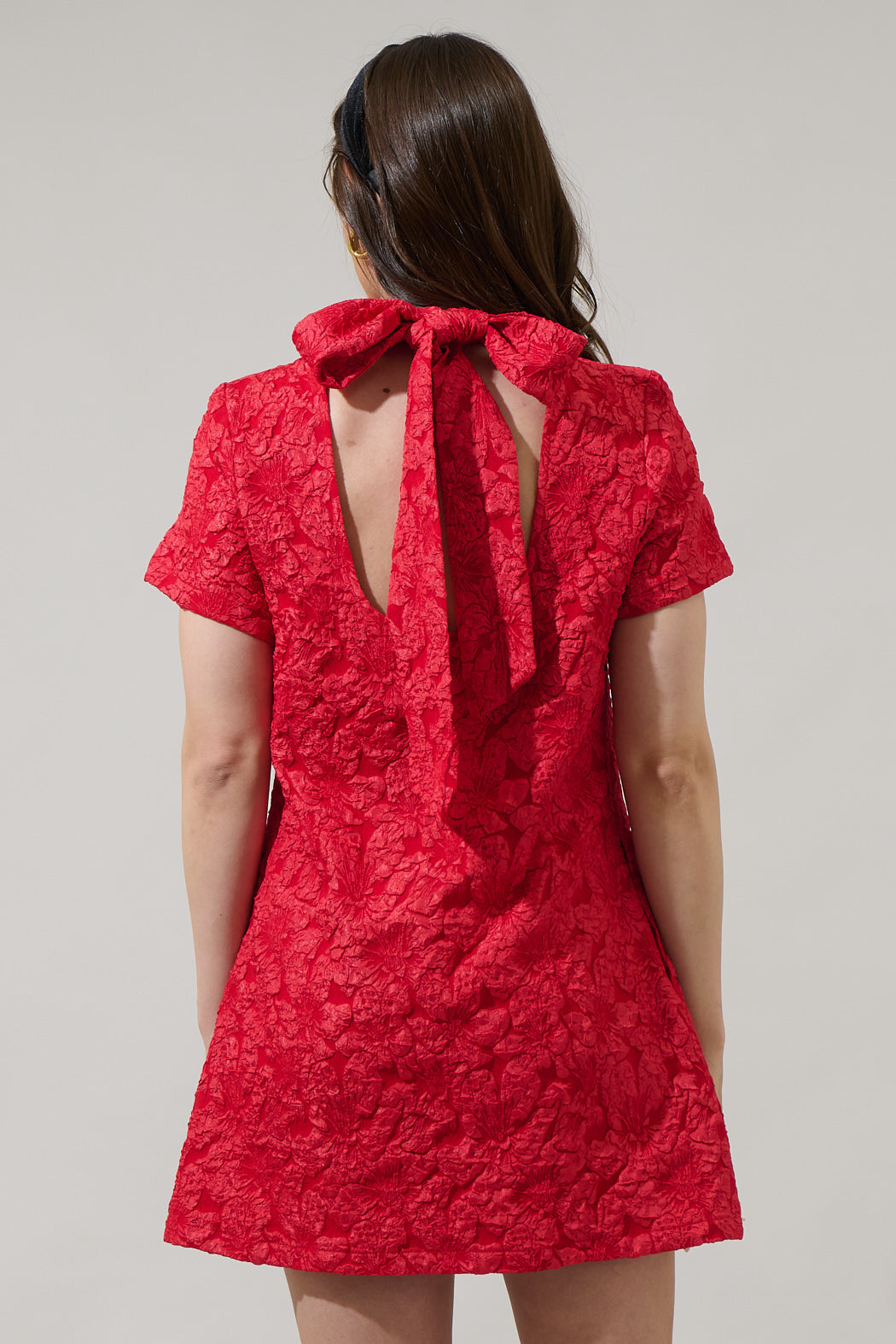 Bethan Jacquard Floral Nova Back Bow Tie Mini Dress