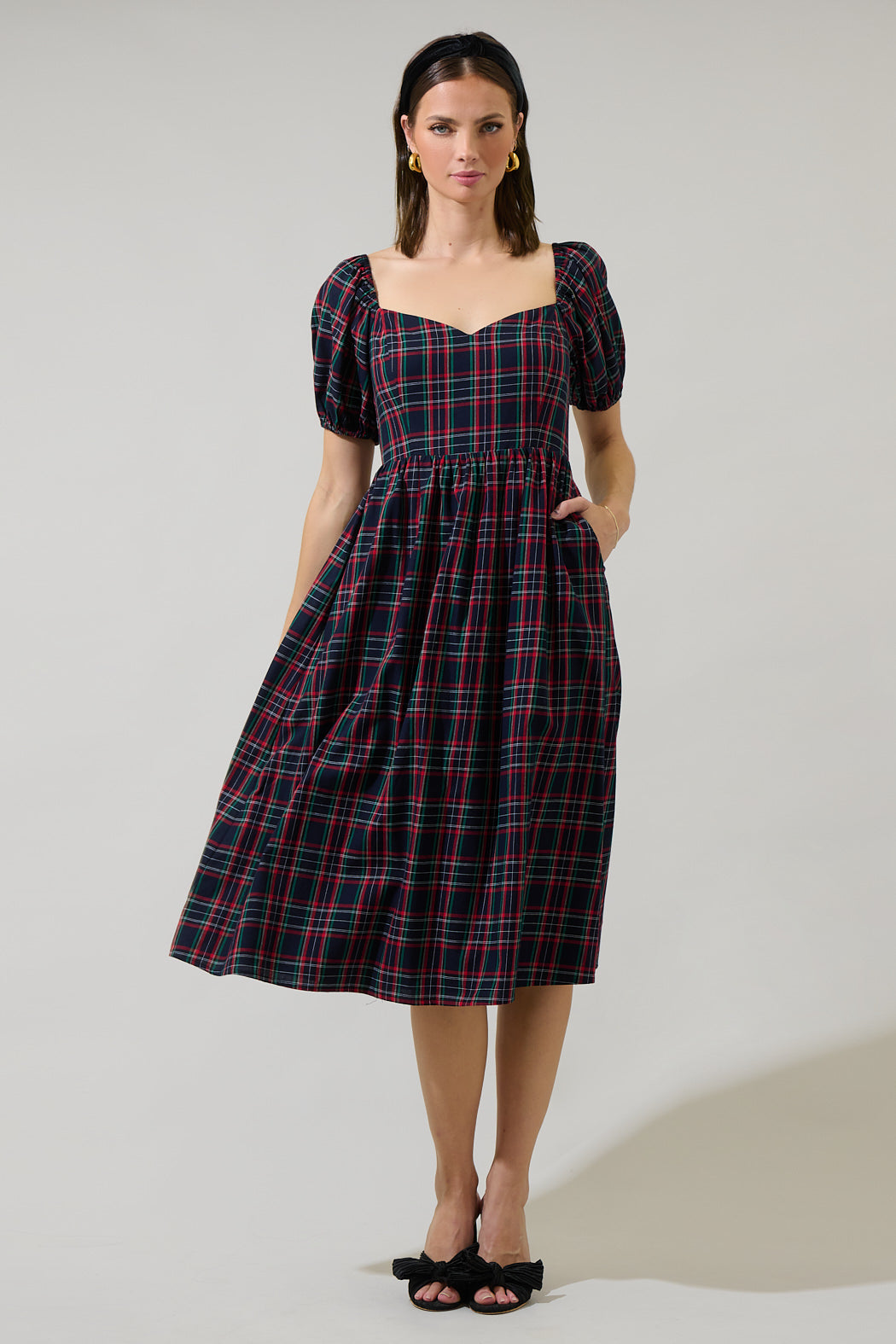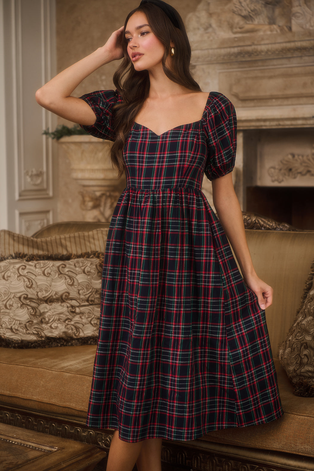 Arvada Plaid Alessi Puff Sleeve Midi Dress