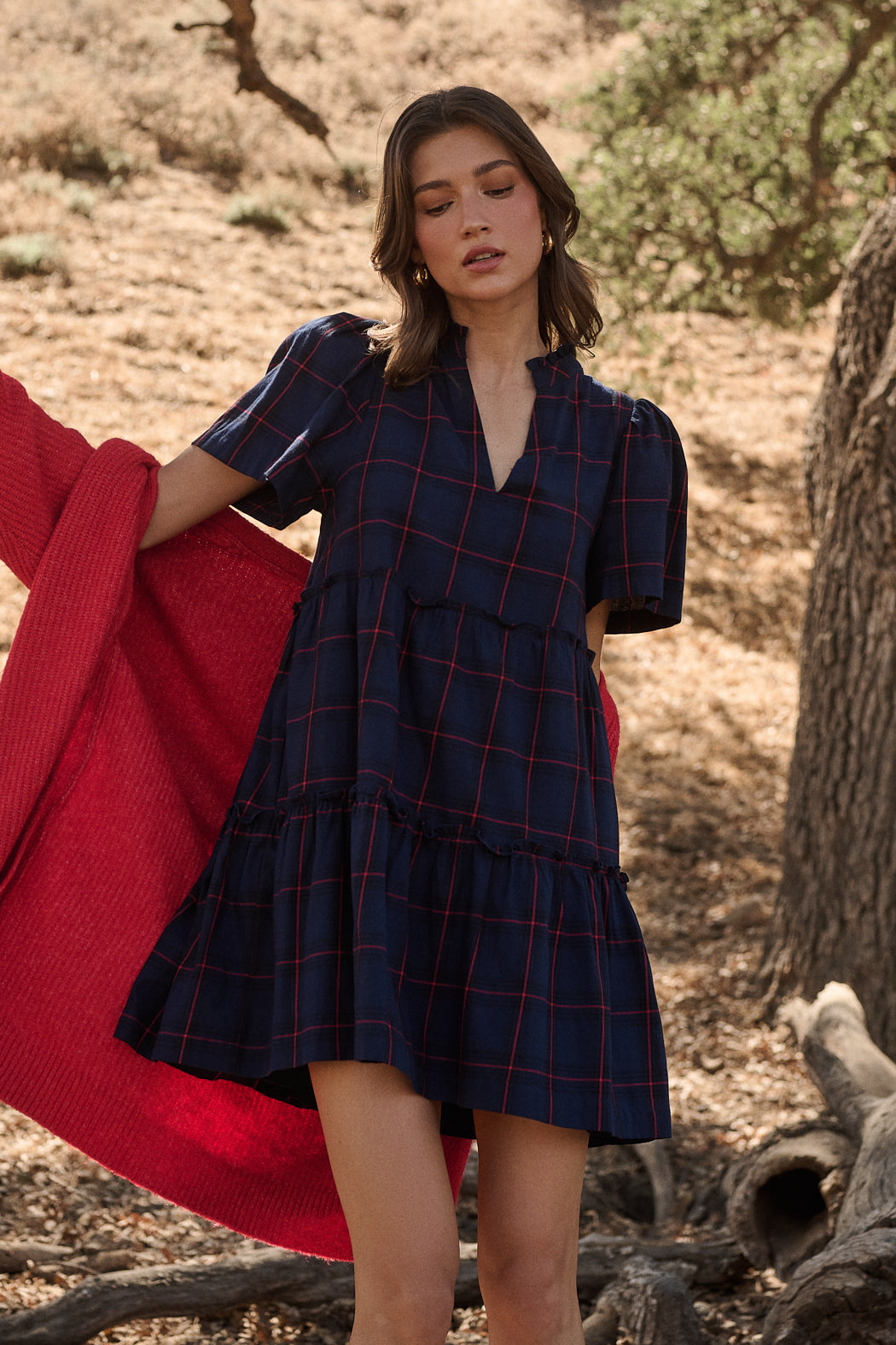 Woodland Red Plaid Lorna Shift Mini Dress