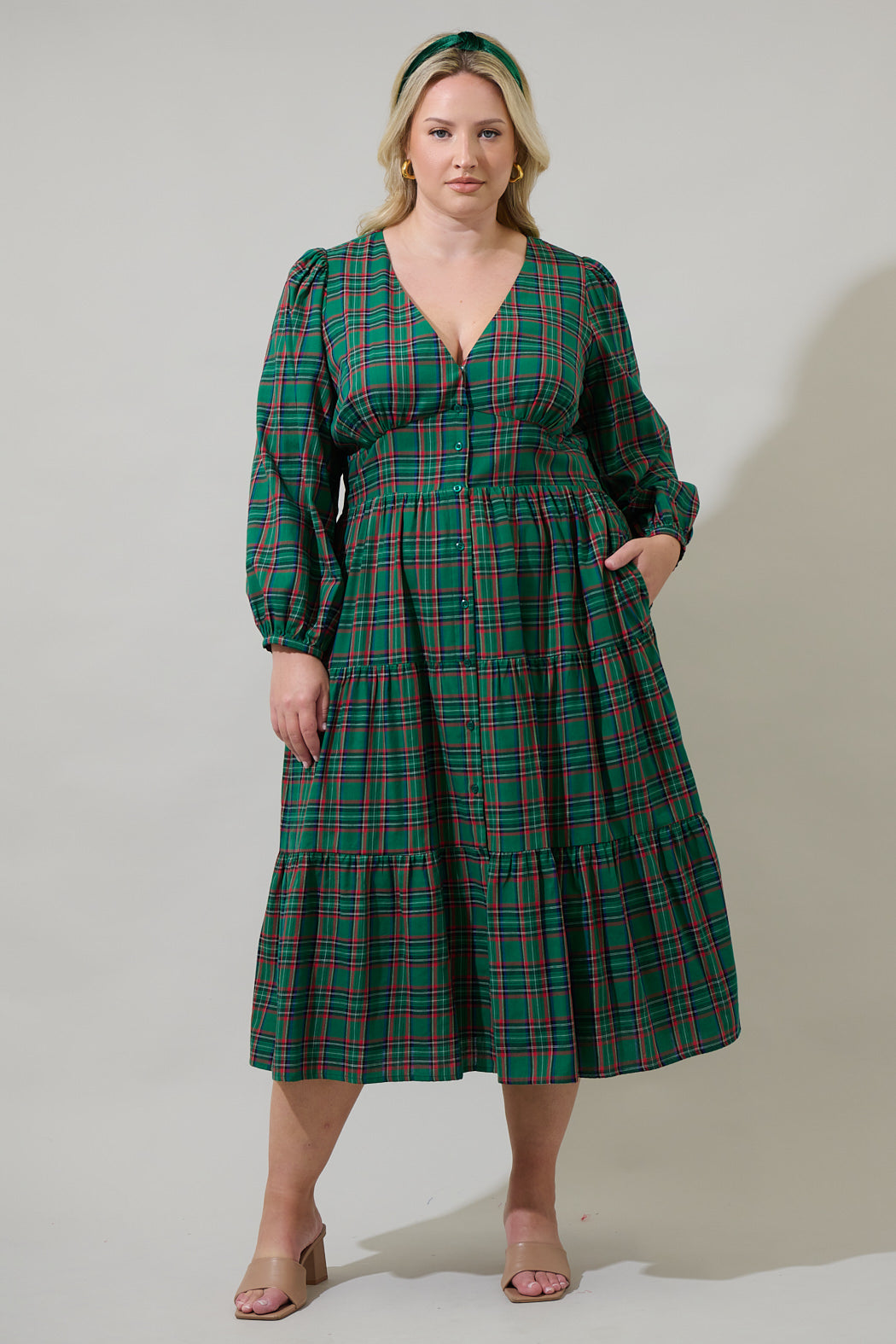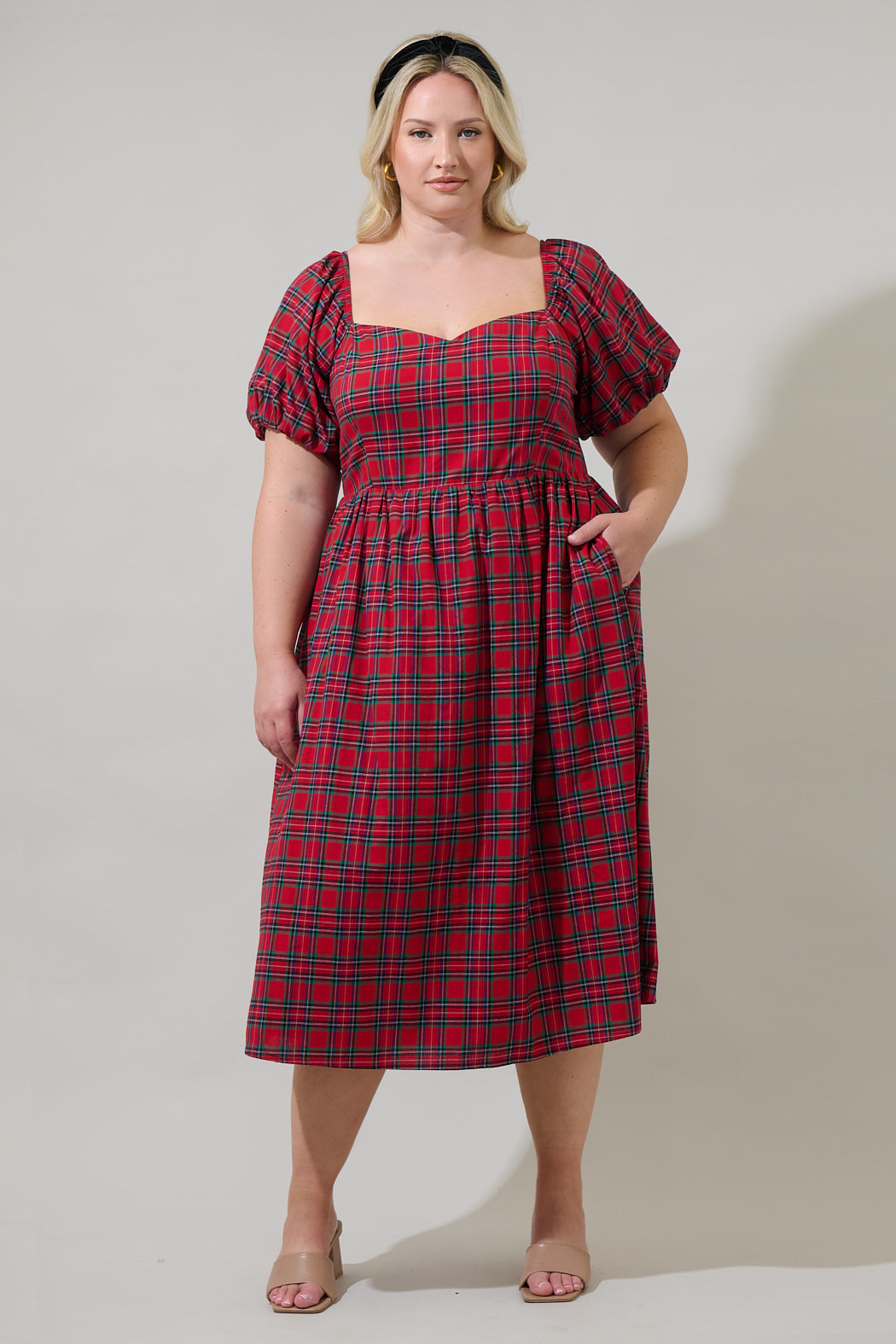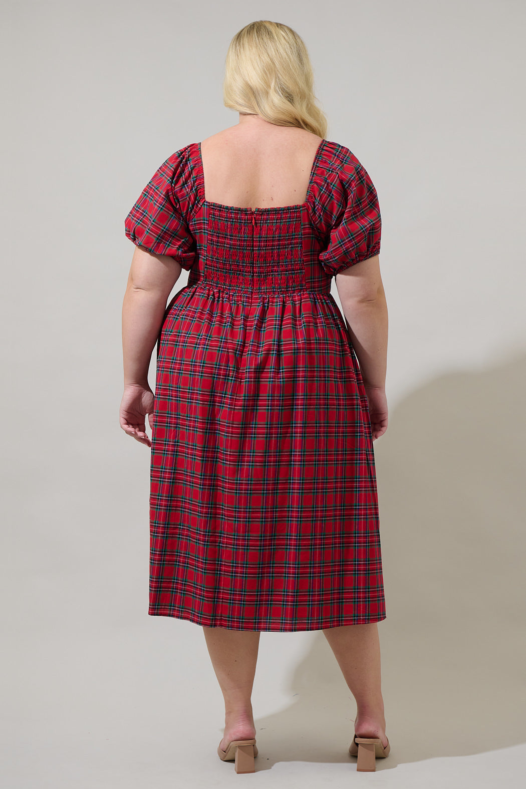 Arvada Plaid Alessi Puff Sleeve Midi Dress Curve