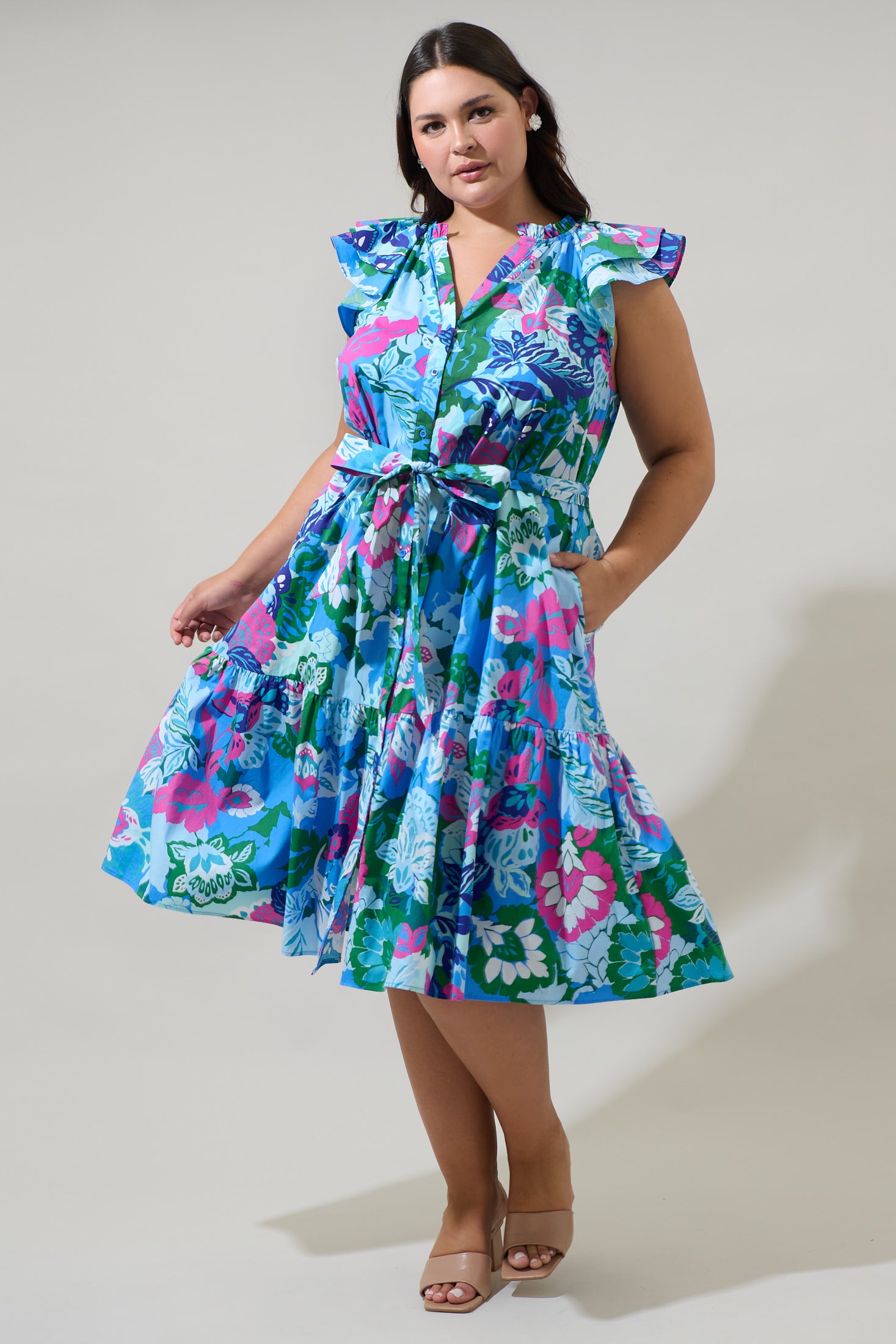 Lavera Floral Charlotte Button Midi Dress Curve