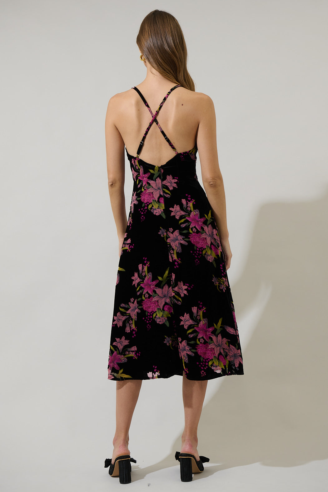 Ace Floral Abrina Velvet Midi Dress