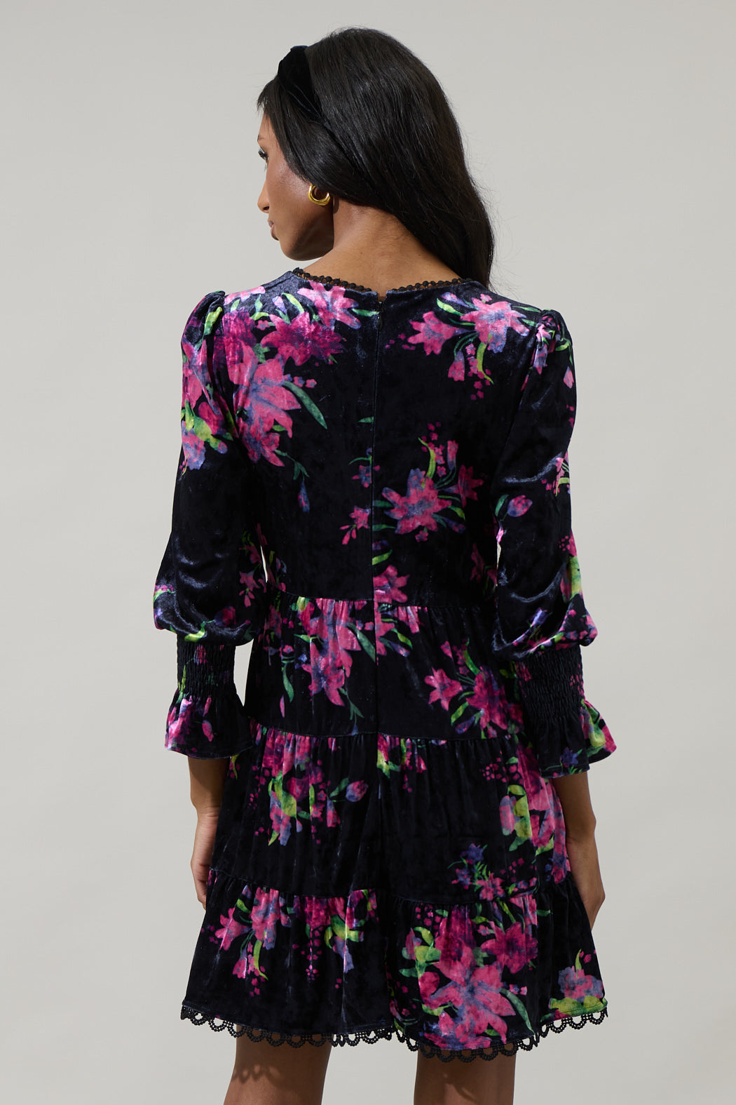 Tulda Floral Amari Velvet Tiered Mini Dress