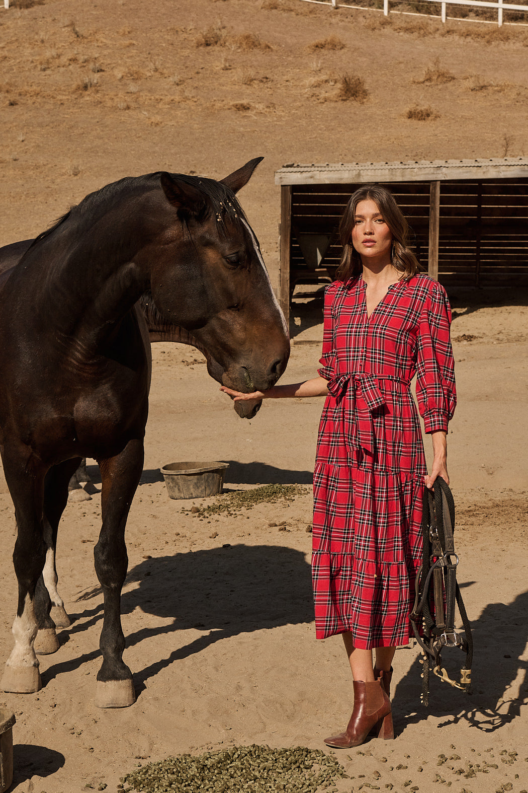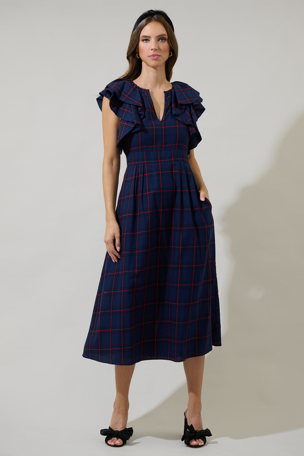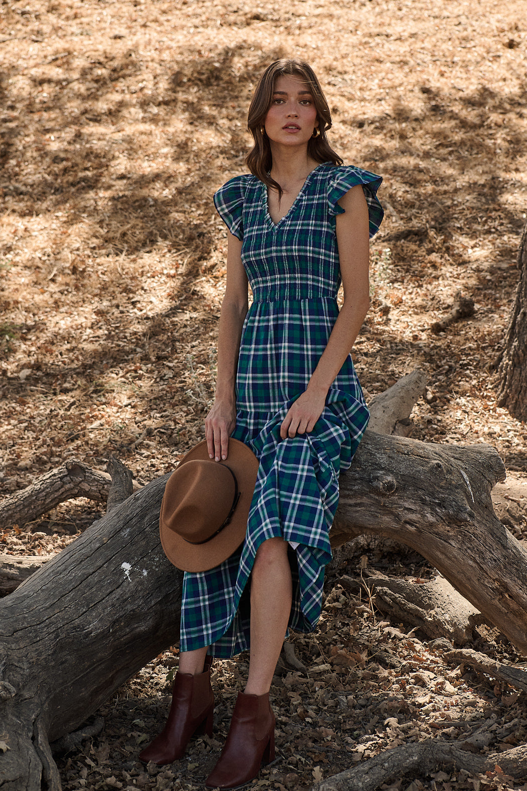 Holbrook Plaid Santana Tie Back Midi Dress