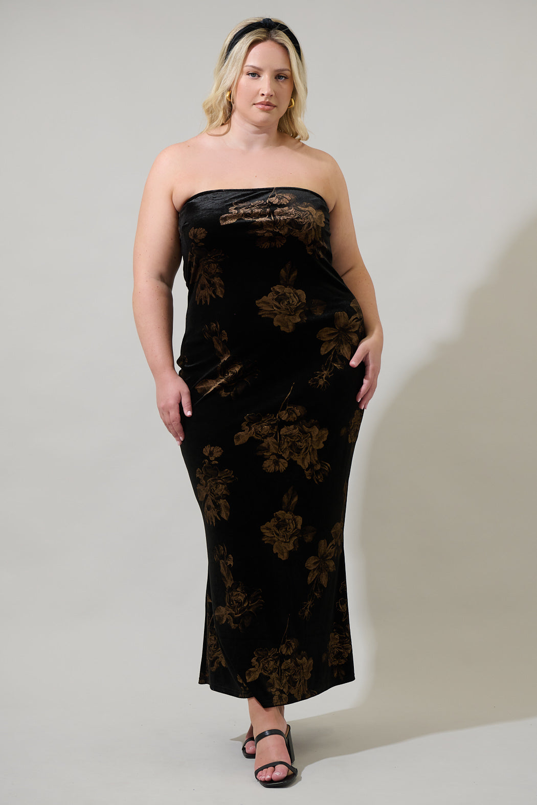 Ace Floral Dynamite Velvet Strapless Maxi Dress Curve
