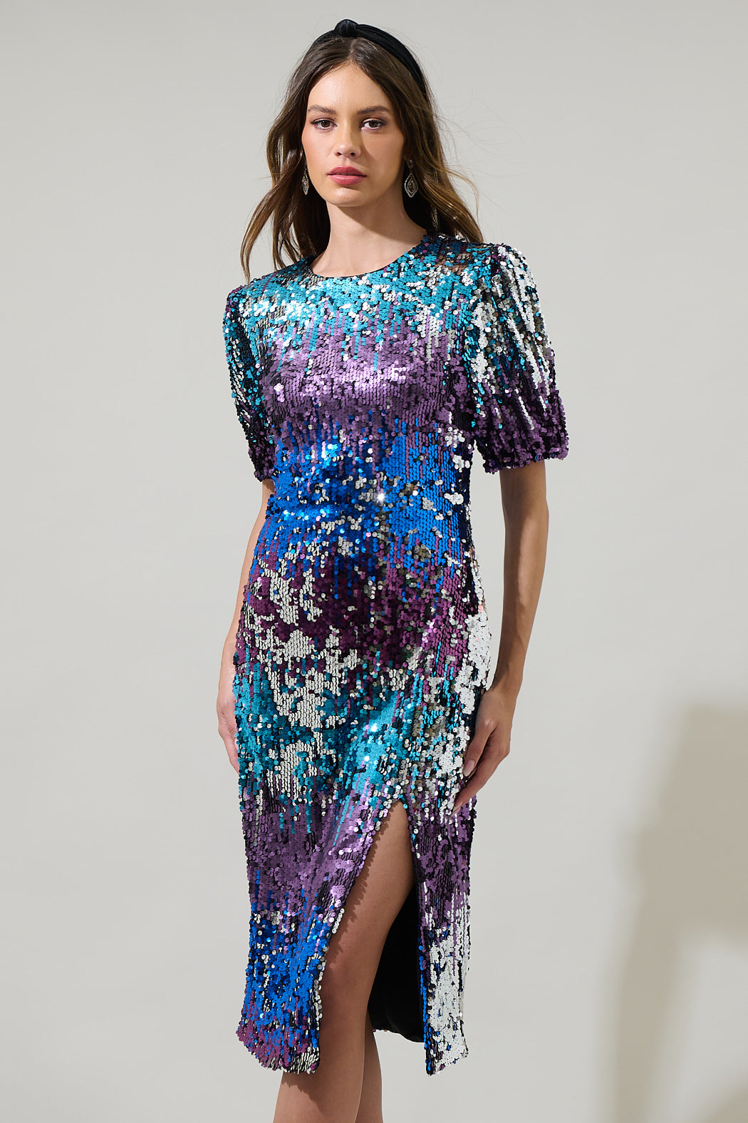 Navette Short Sleeve Sequin Midi Dress