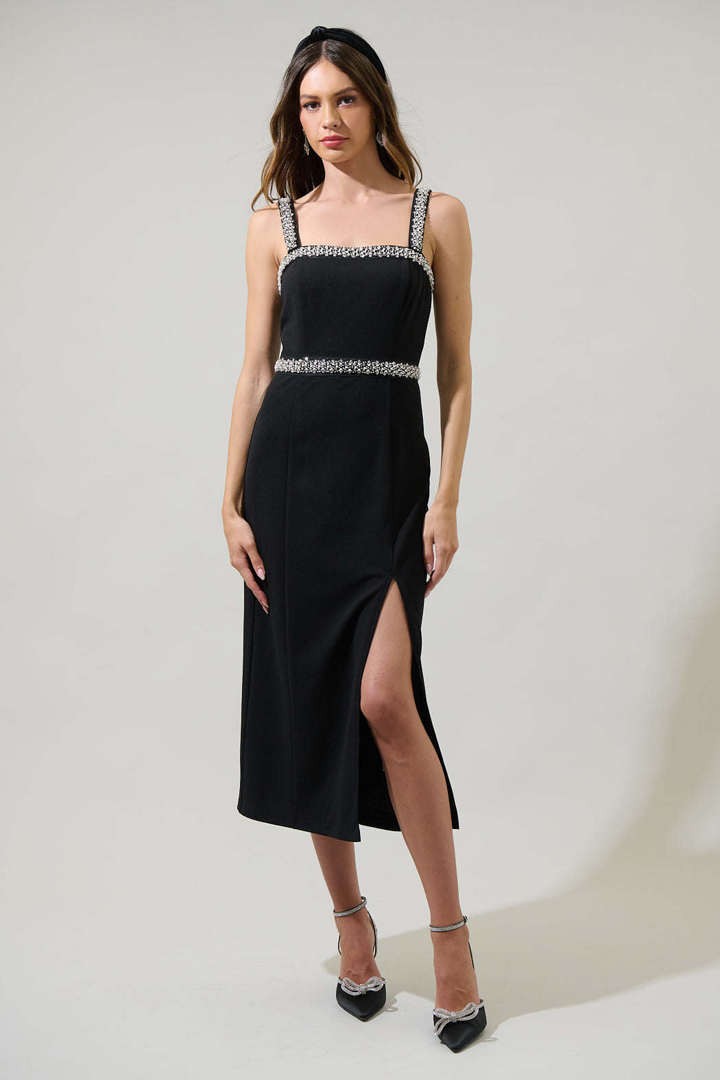 Ravena Rhinestone Slit Midi Dress