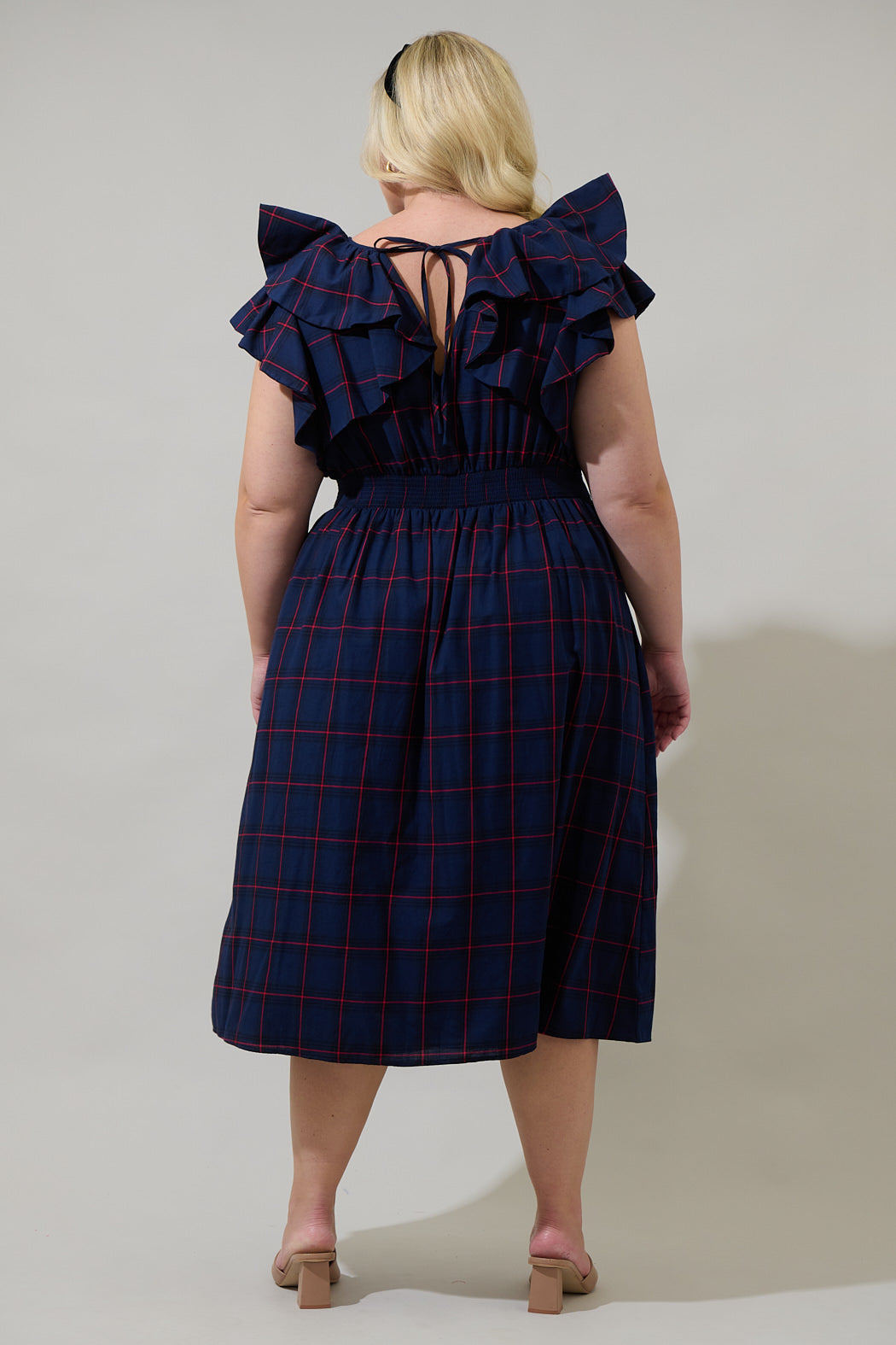 Holbrook Plaid Santana Tie Back Midi Dress Curve