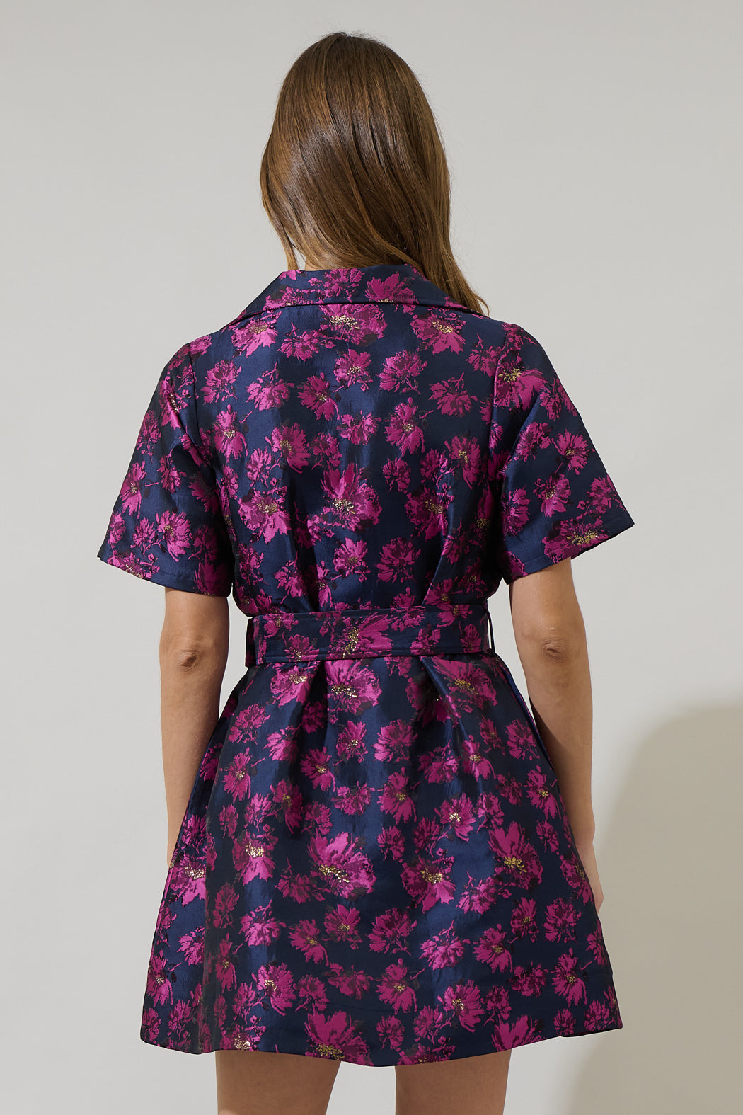Lorna Jacquard Floral De Soto Collared Mini Dress