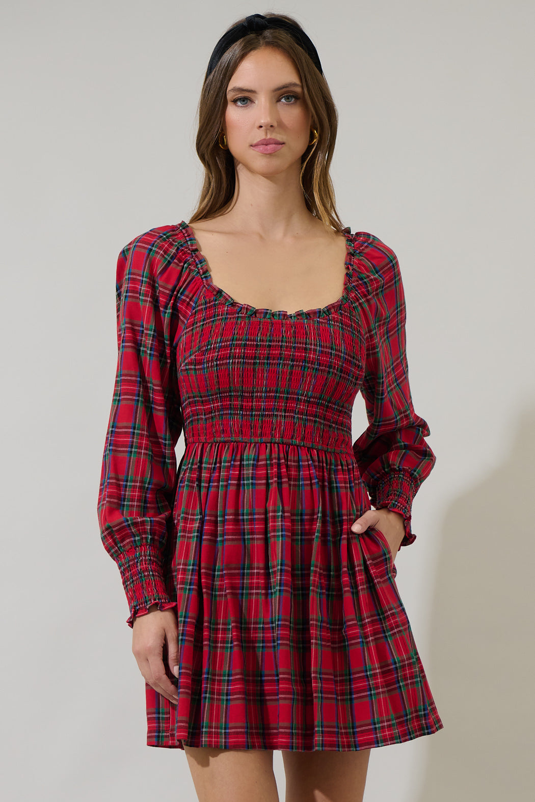 Jace Plaid Kourt Smocked Mini Dress