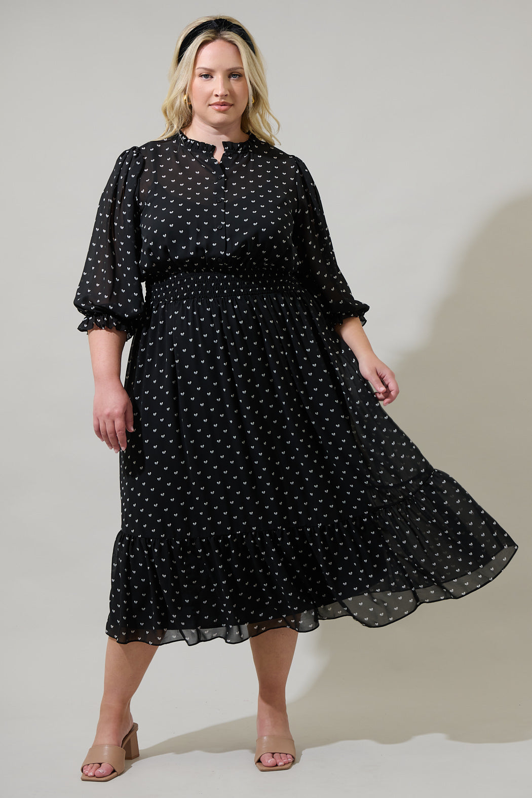 Rosaly Bow Irene Smocked Midi Dress Curve