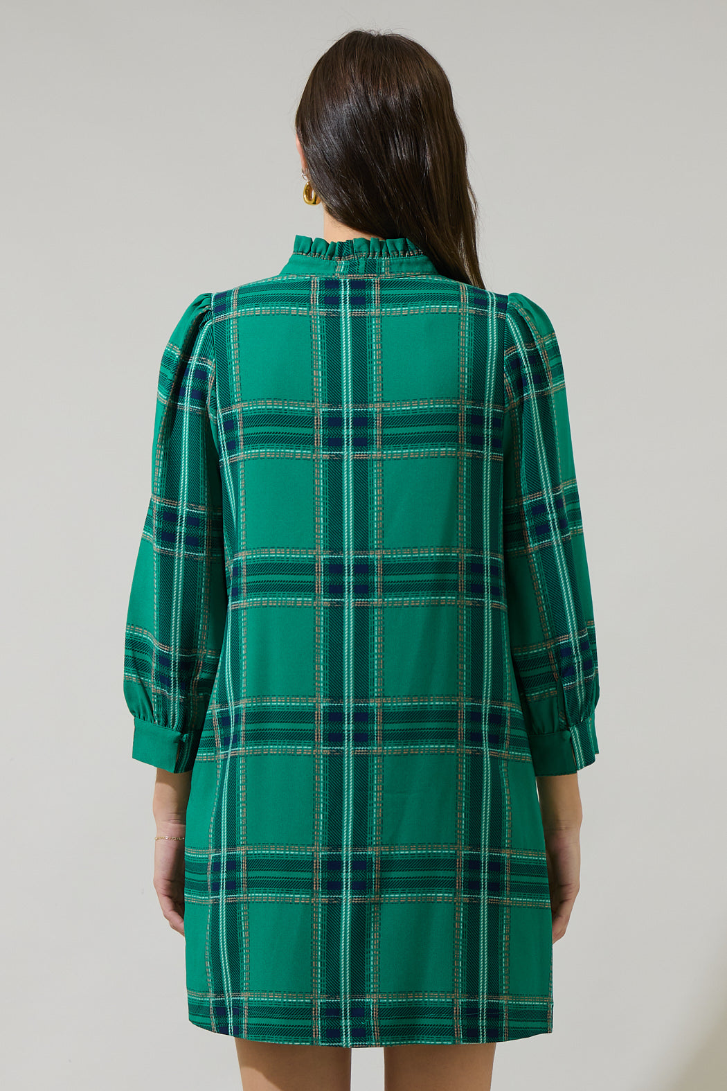 Woodland Jade Plaid Lorna Shift Mini Dress