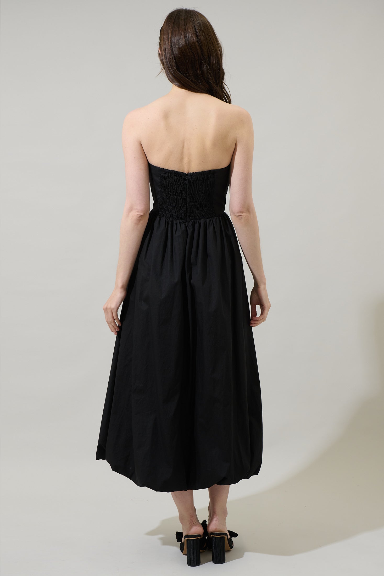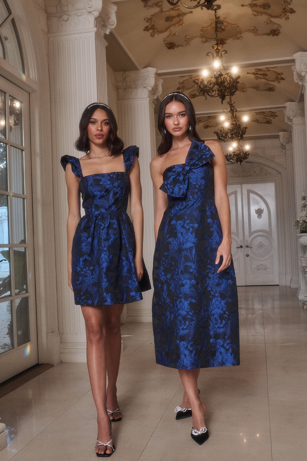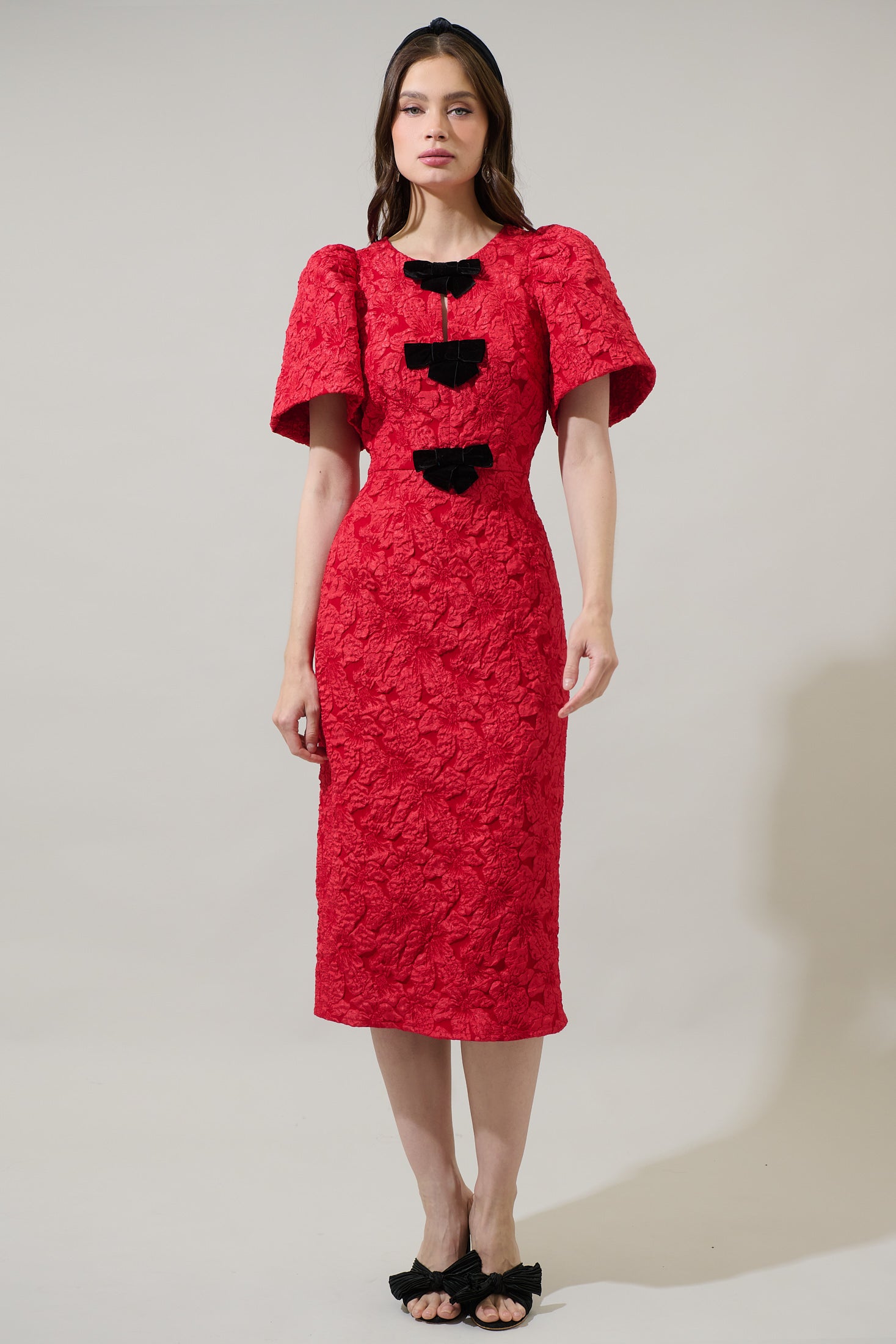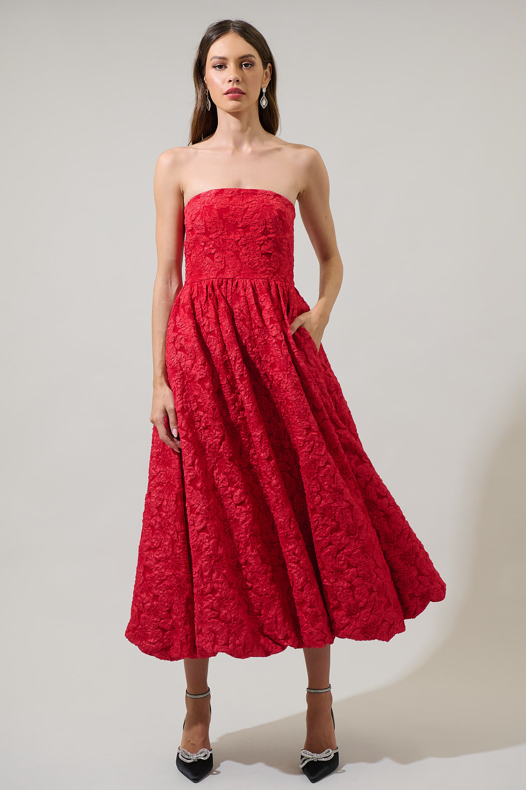 Vernonia Floral Jacquard Lola Bow Strapless Midi Dress