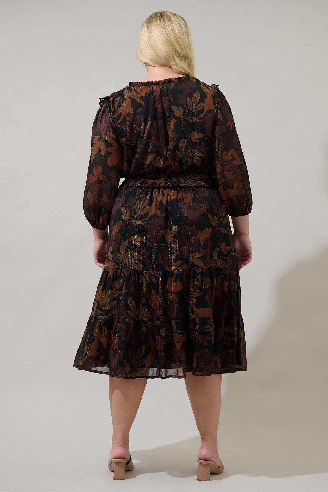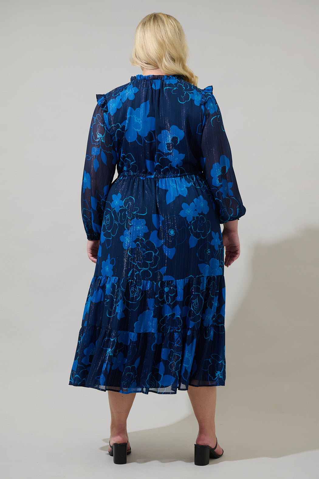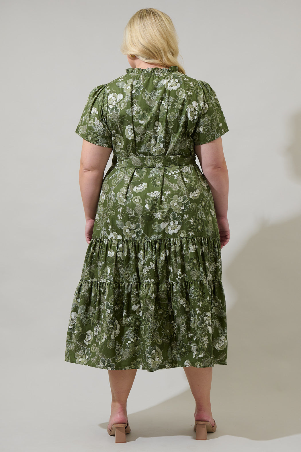 Bluford Floral Kristen Tiered Midi Dress Curve