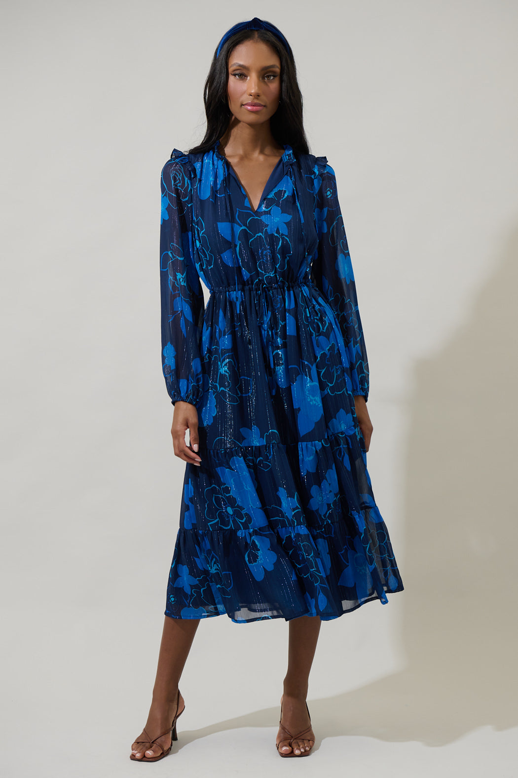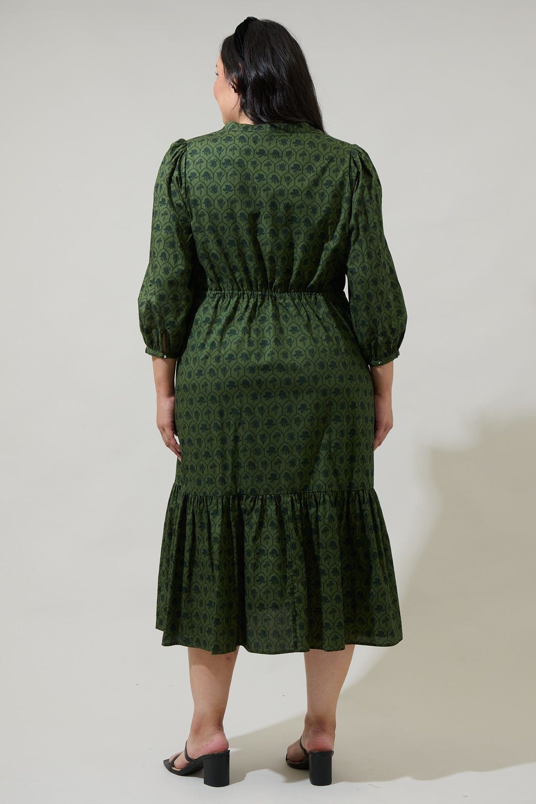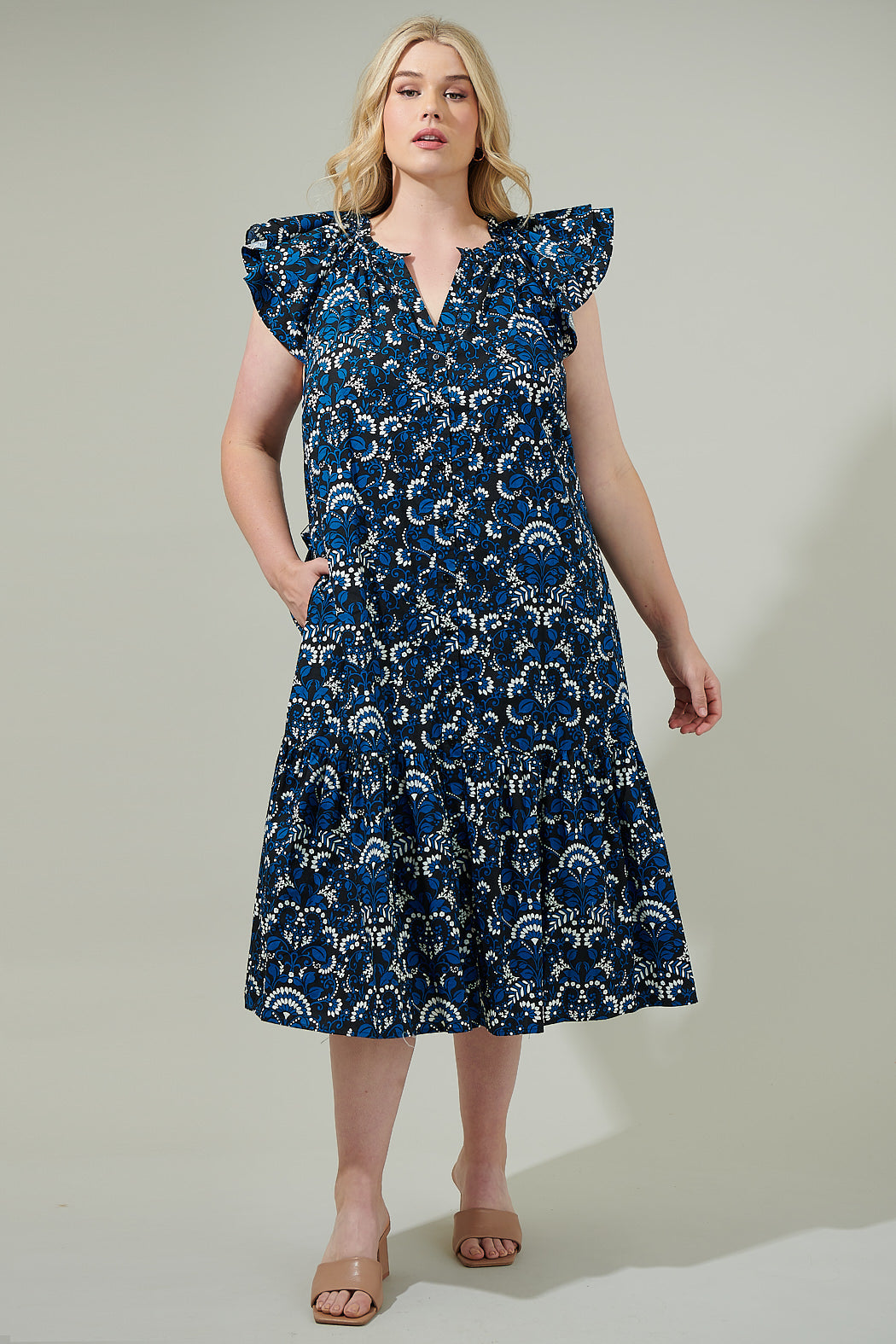 Bluford Floral Kristen Tiered Midi Dress Curve