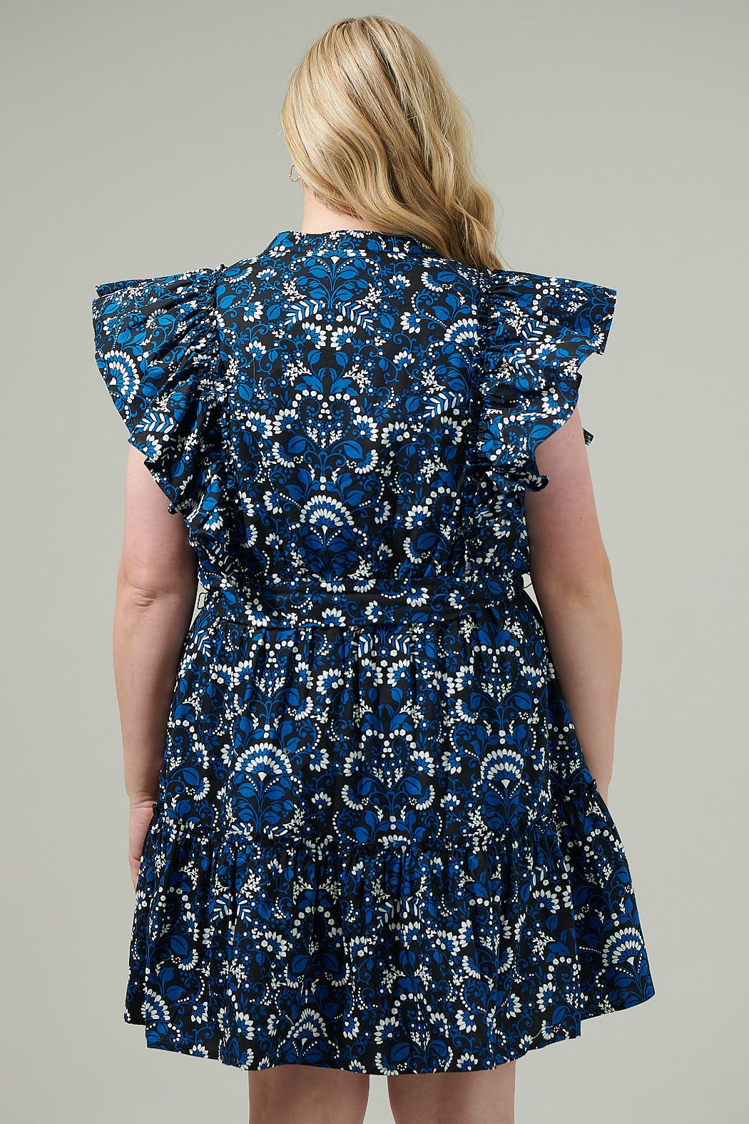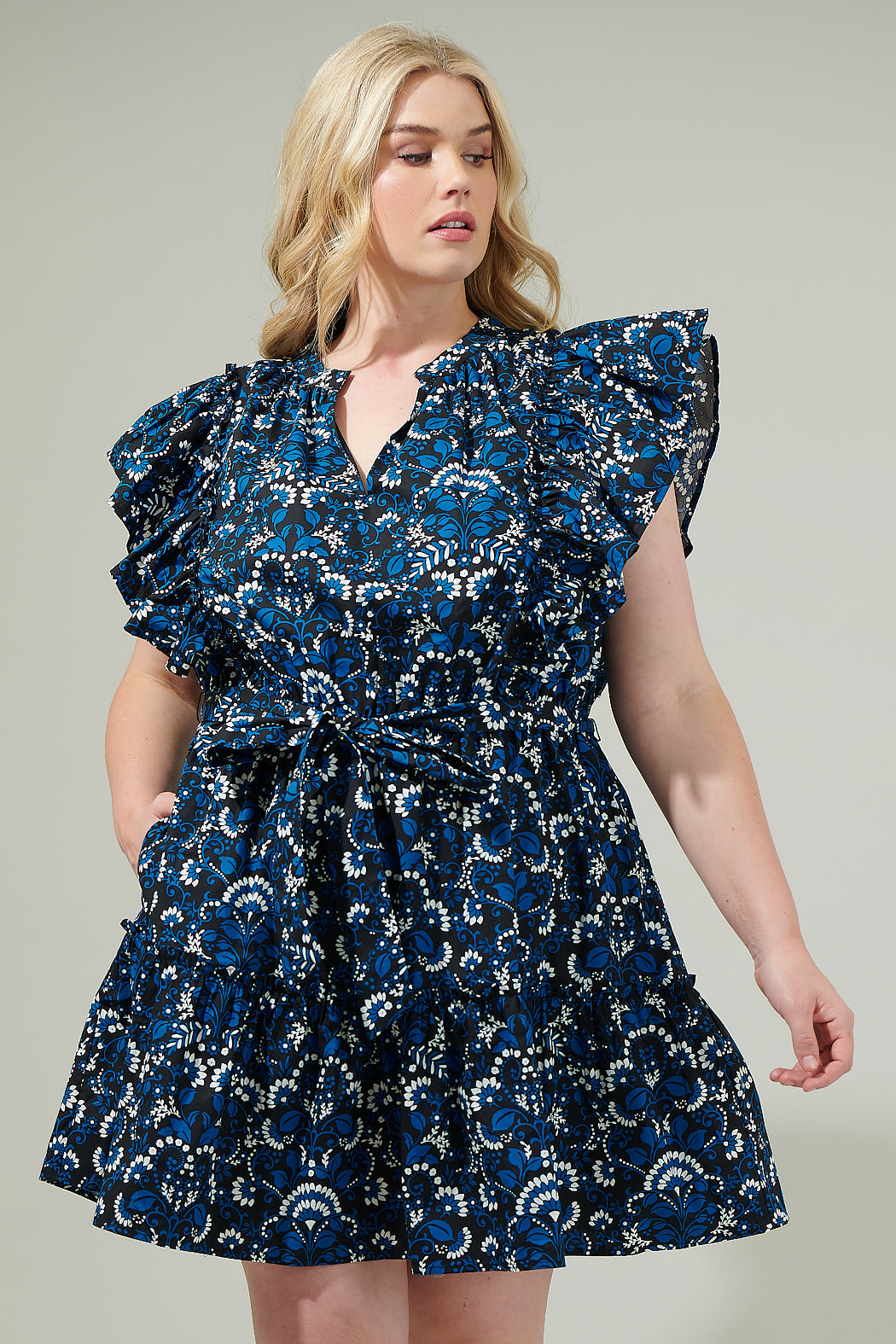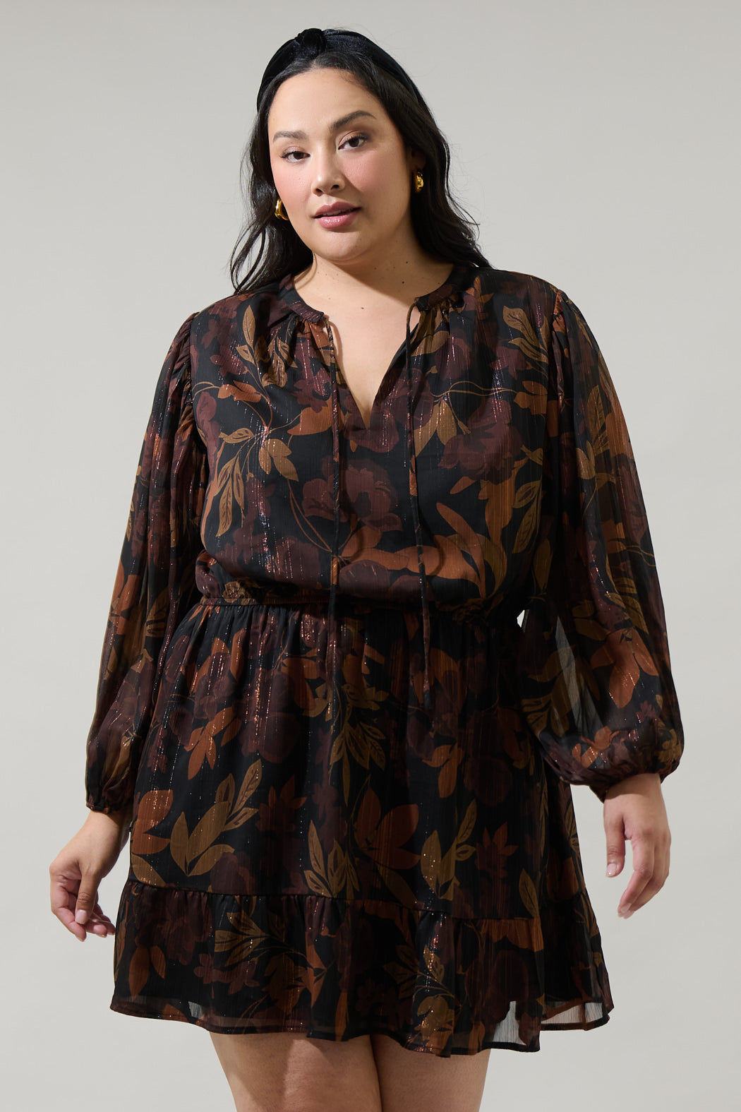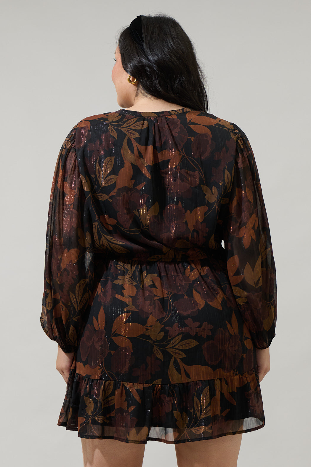 Larba Floral Paxton Balloon Sleeve Mini Dress Curve