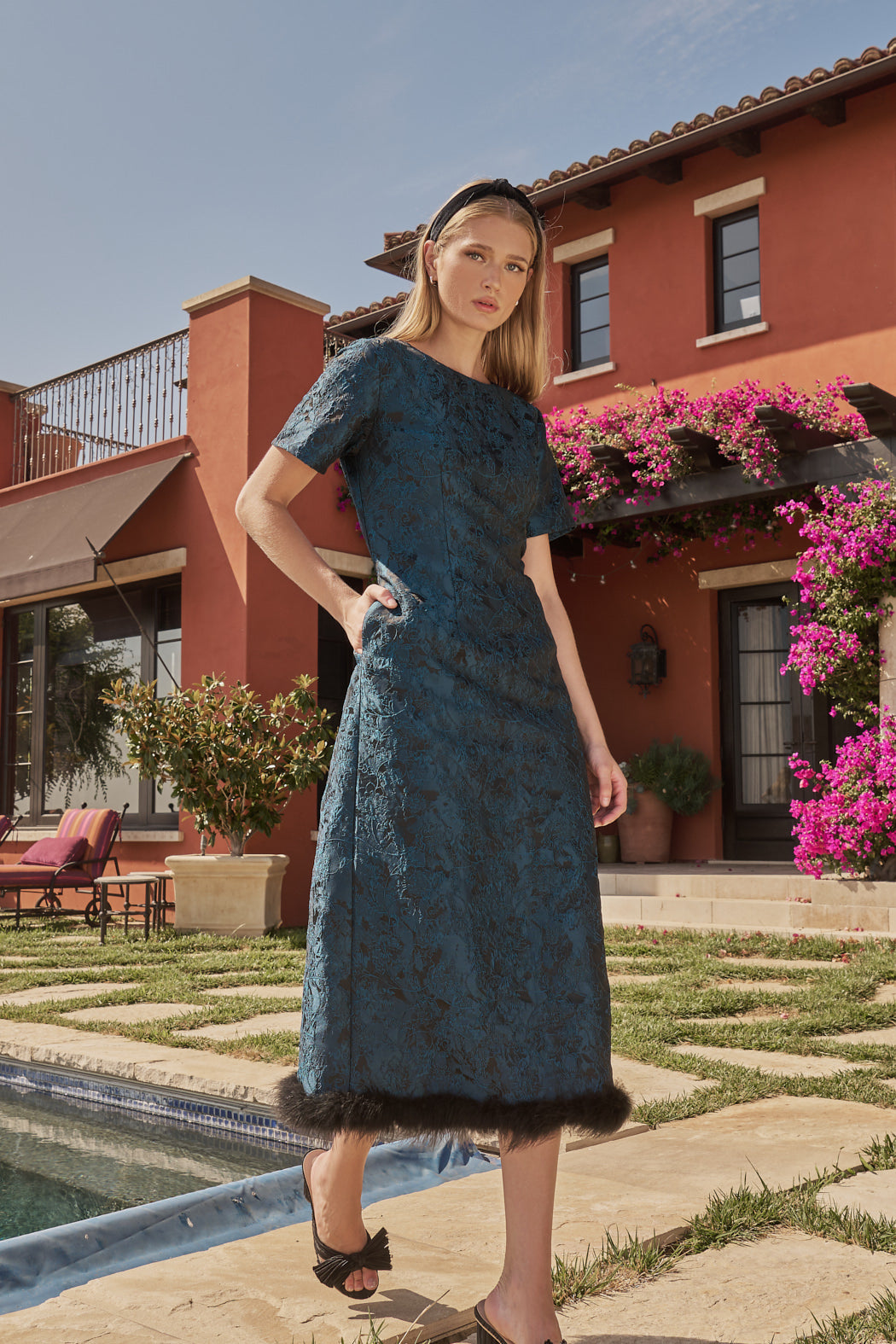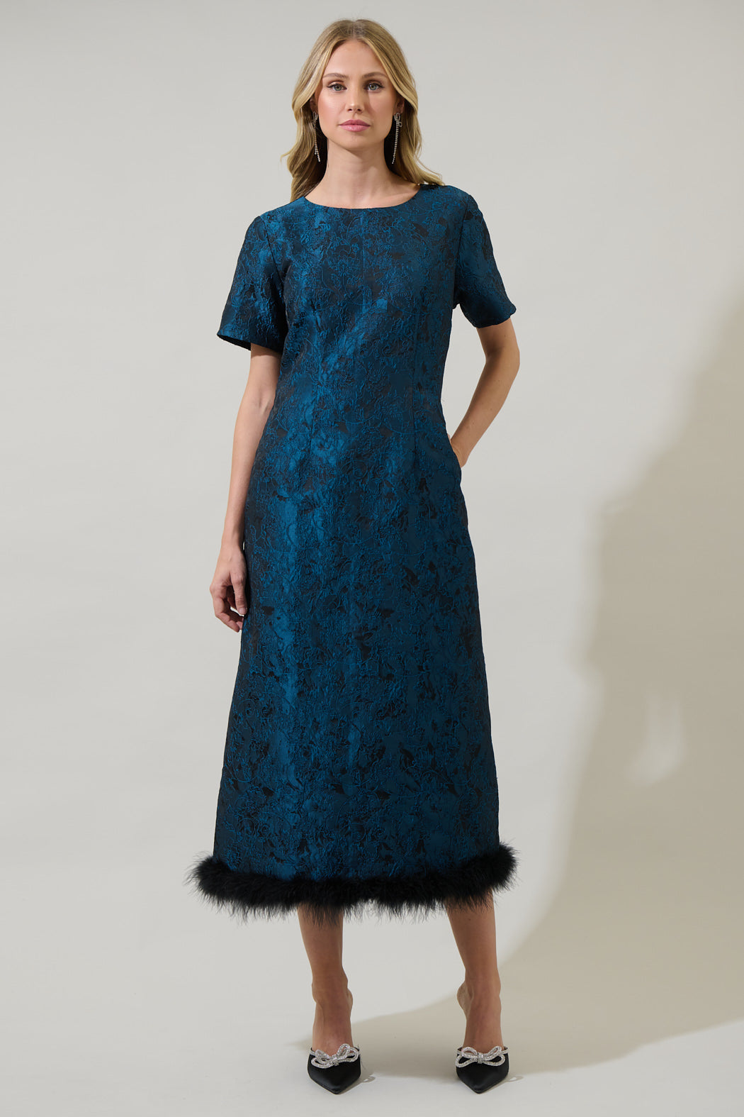 Arielle Jacquard Tania Short Sleeve Midi Dress