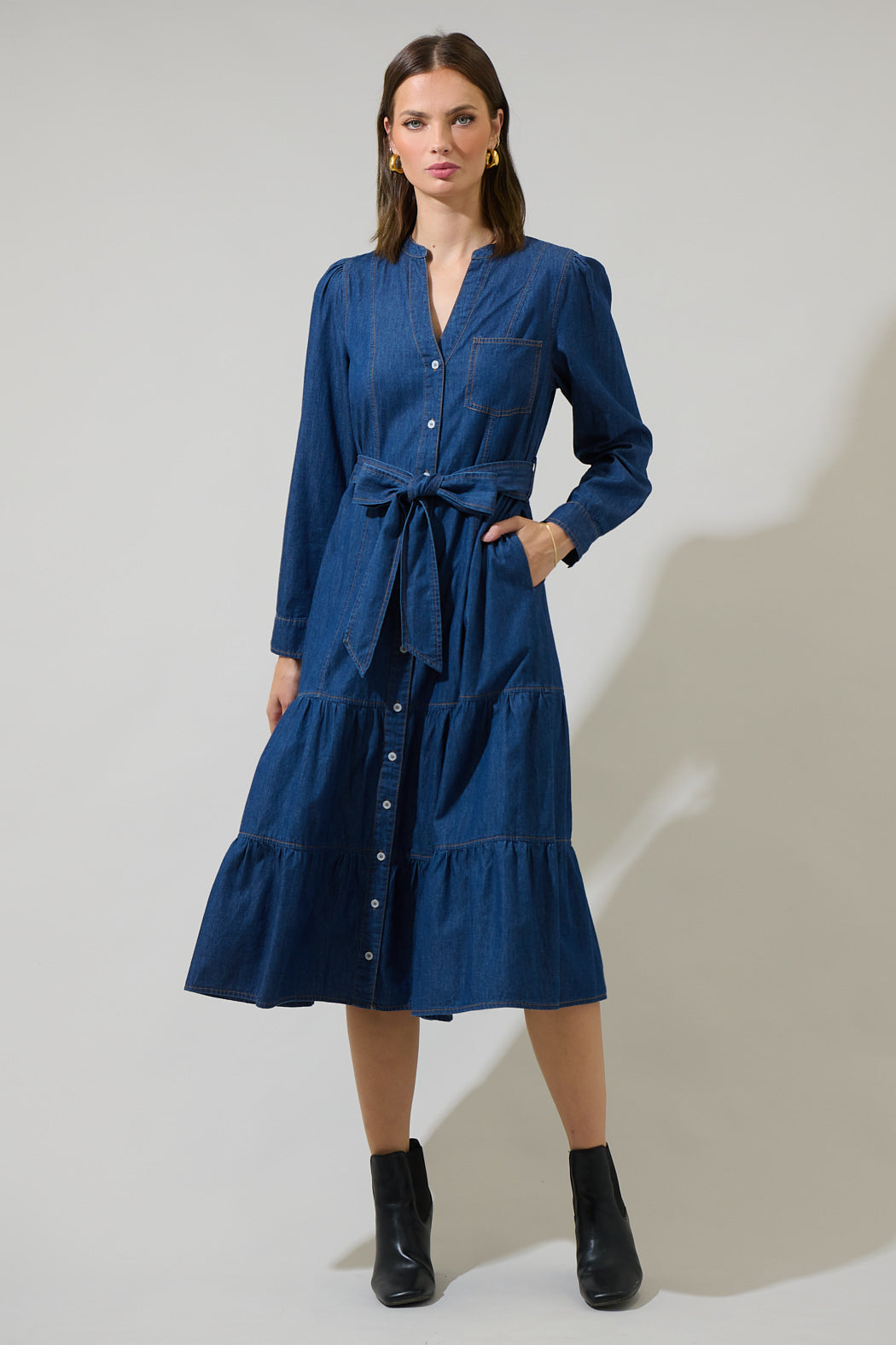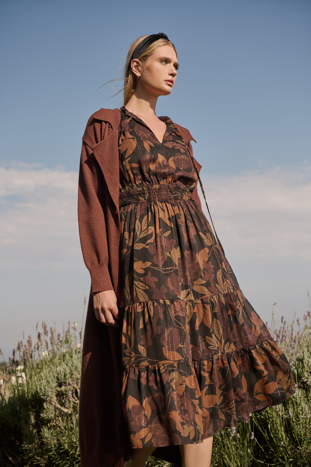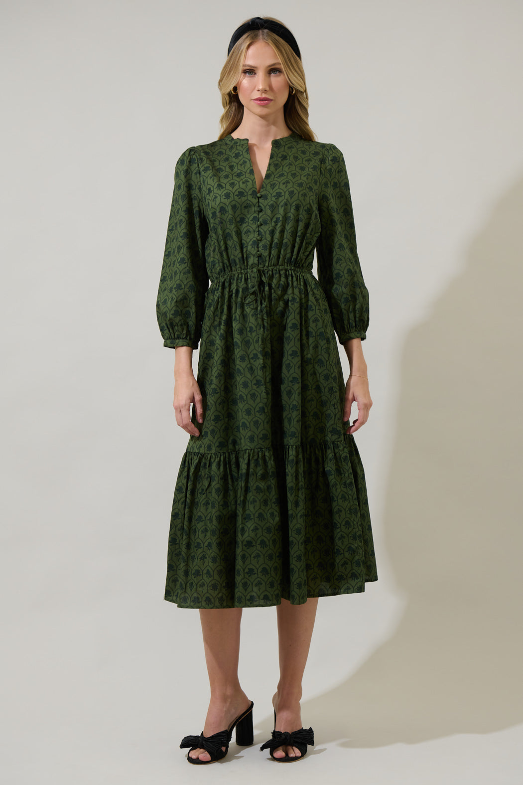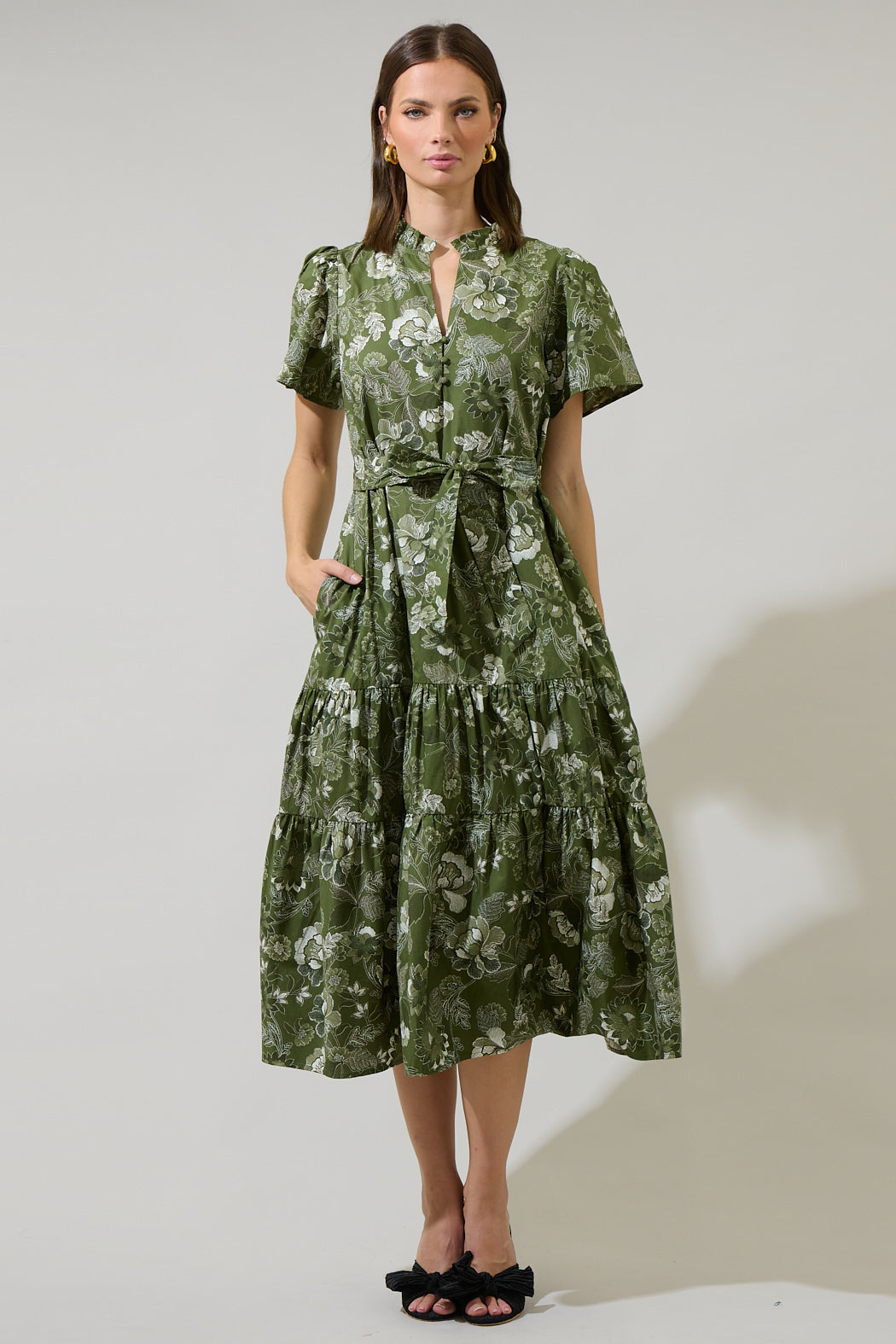 Hazleton Floral Britt Poplin Tiered Midi Dress