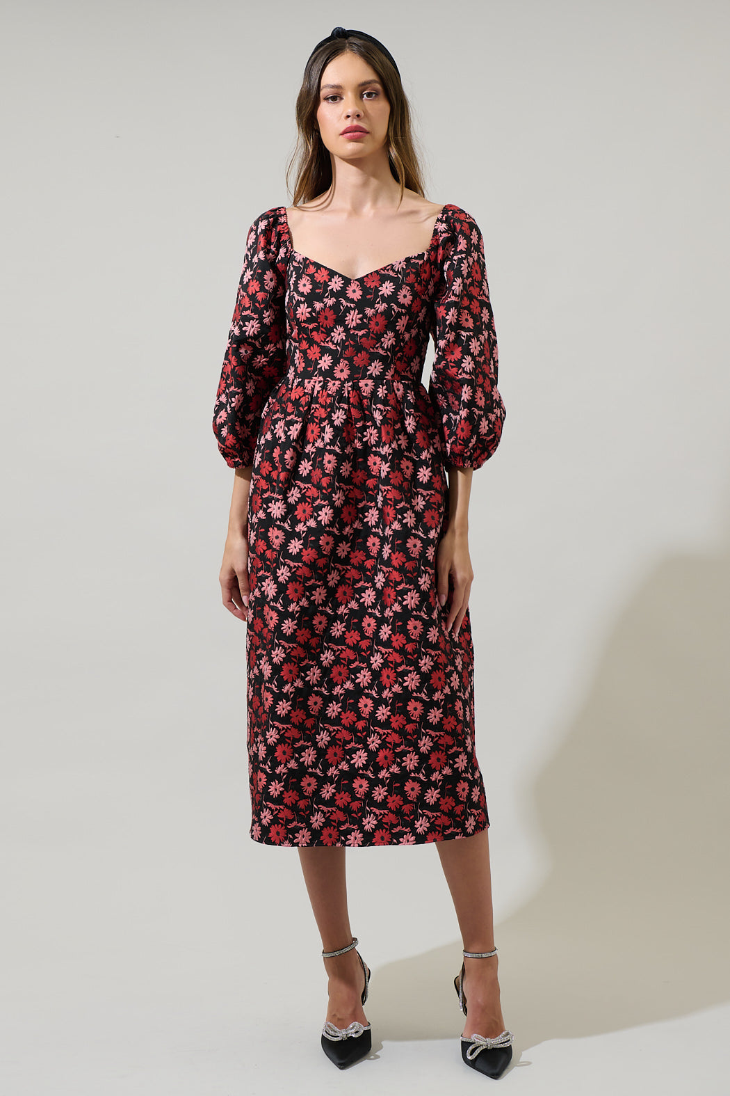 Somerton Floral Aurelia Babydoll Midi Dress Curve