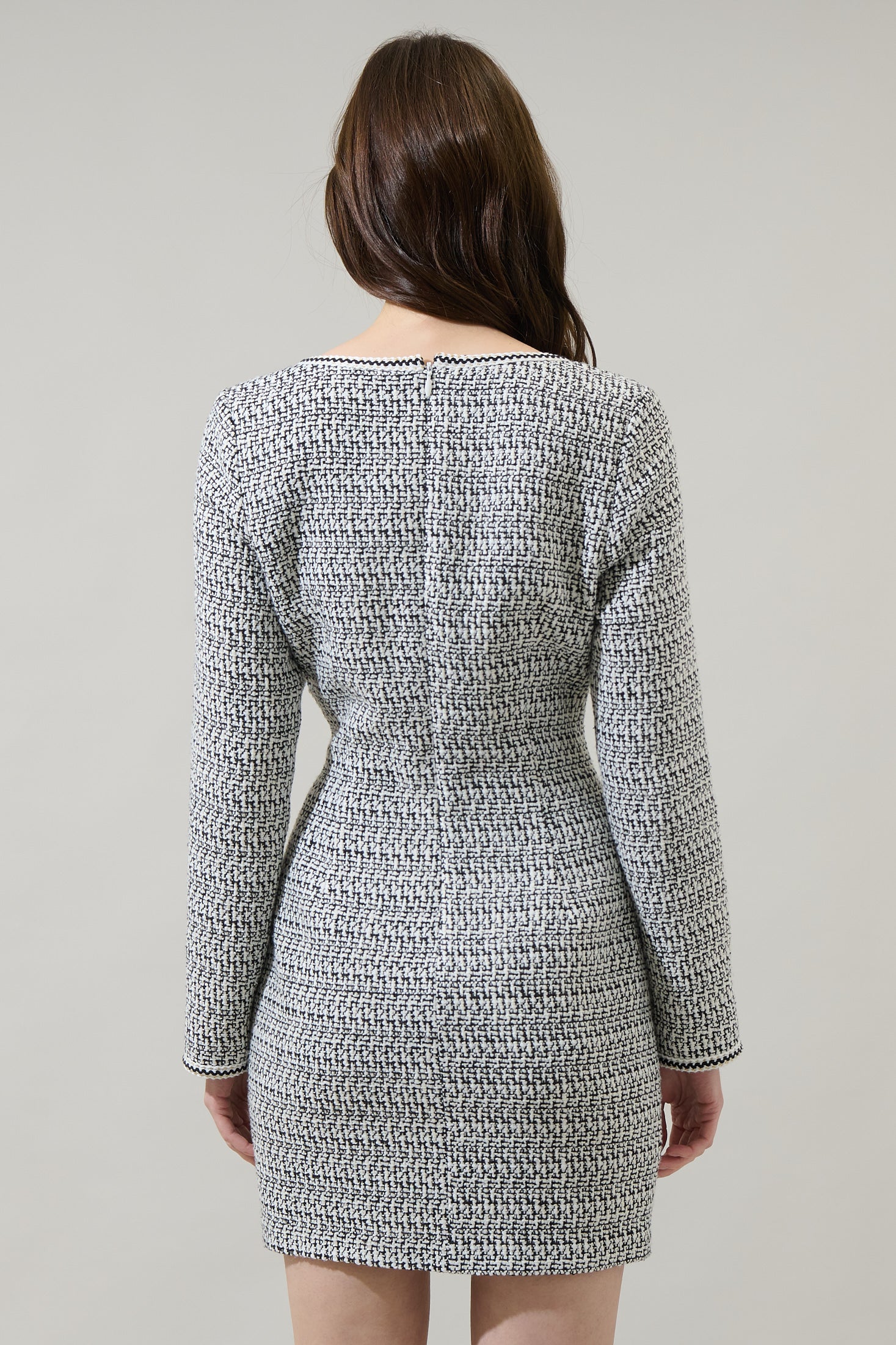 Janae Tweed Salome Pearl Button Down Mini Dress