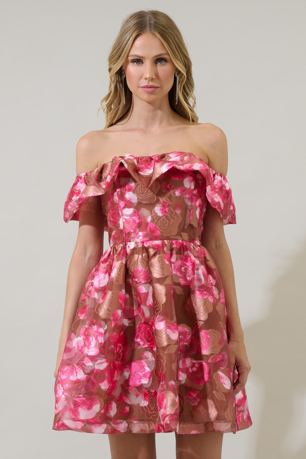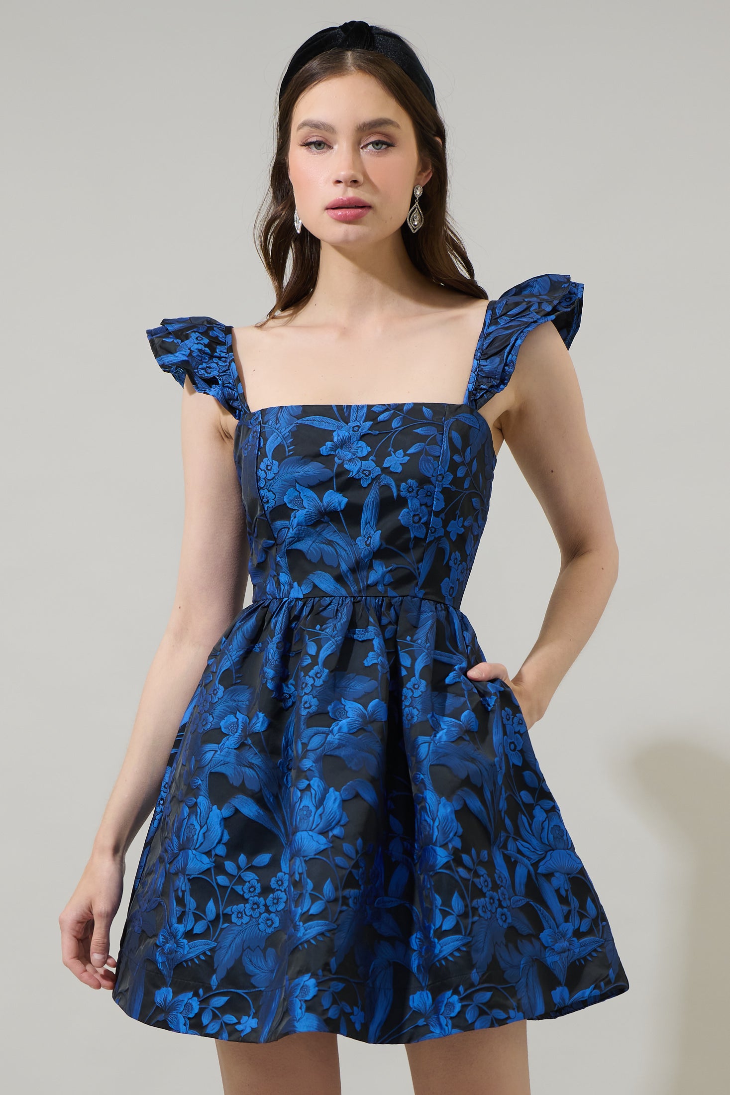 Vernonia Floral Jacquard Ruffle Mini Dress