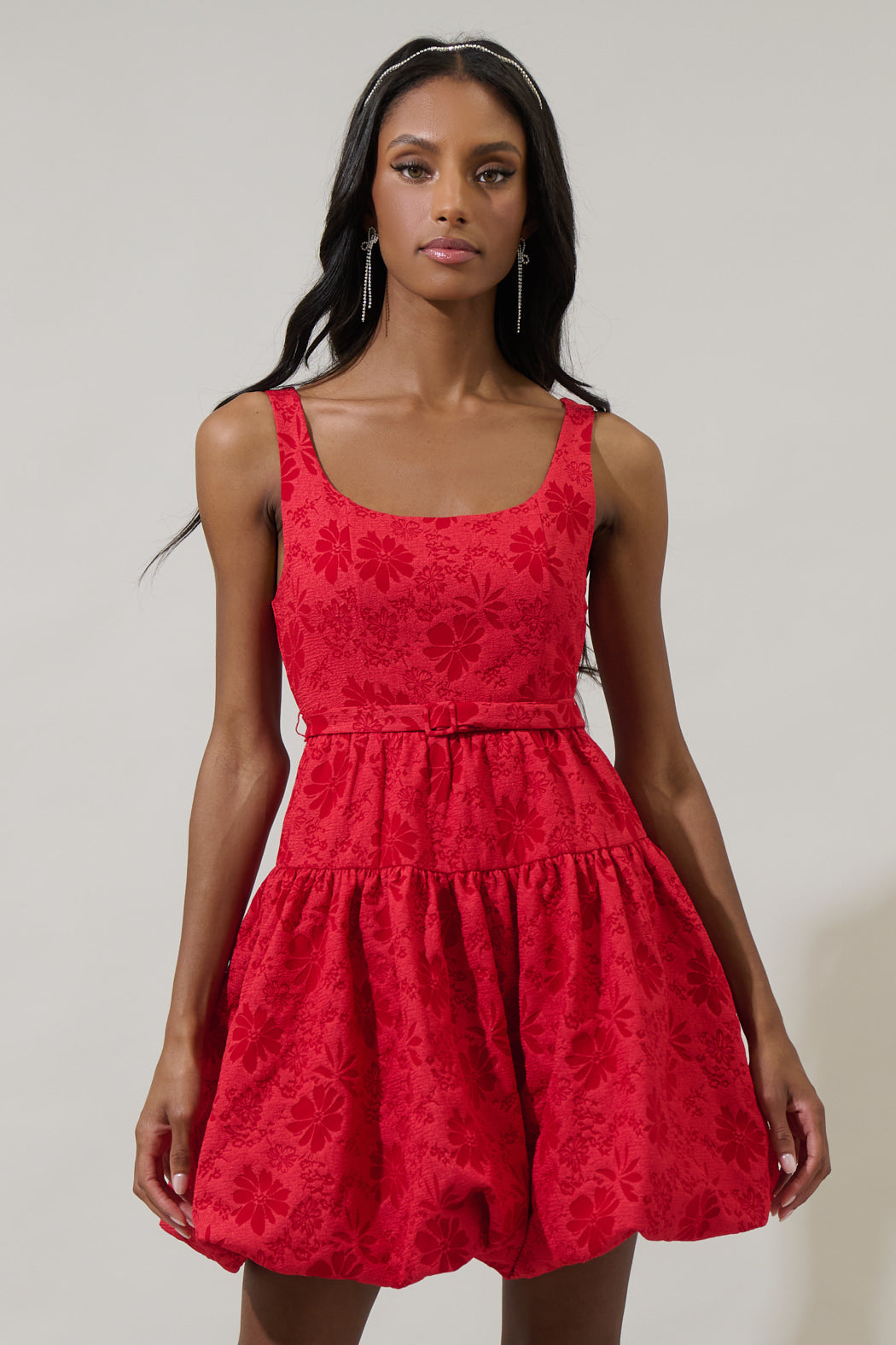 Tulsa Floral Jacquard Drea Bubble Mini Dress