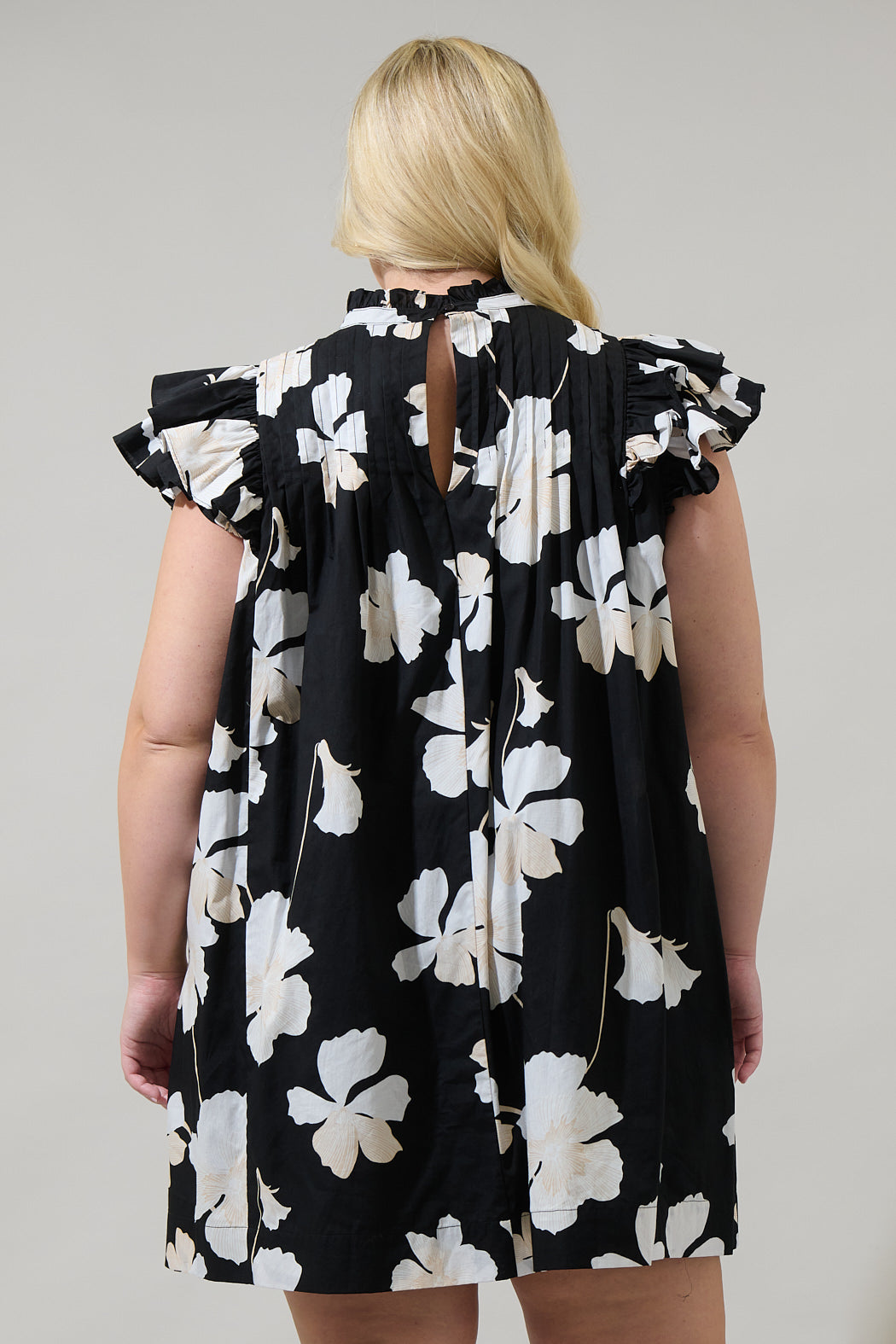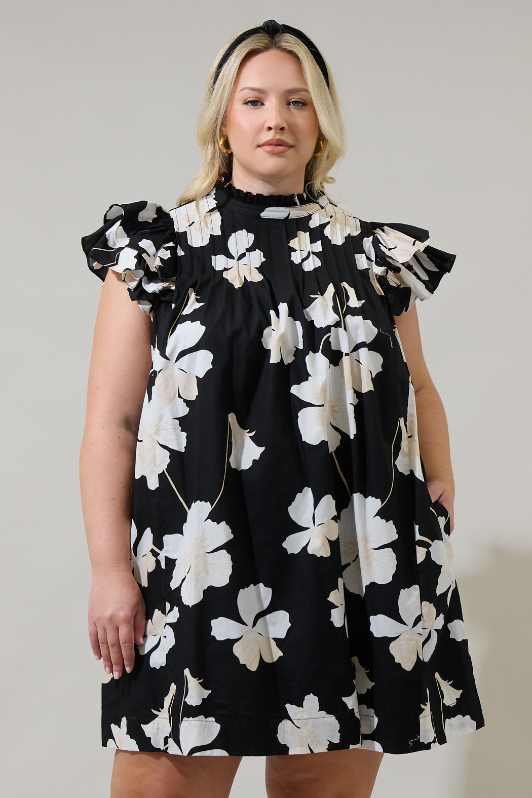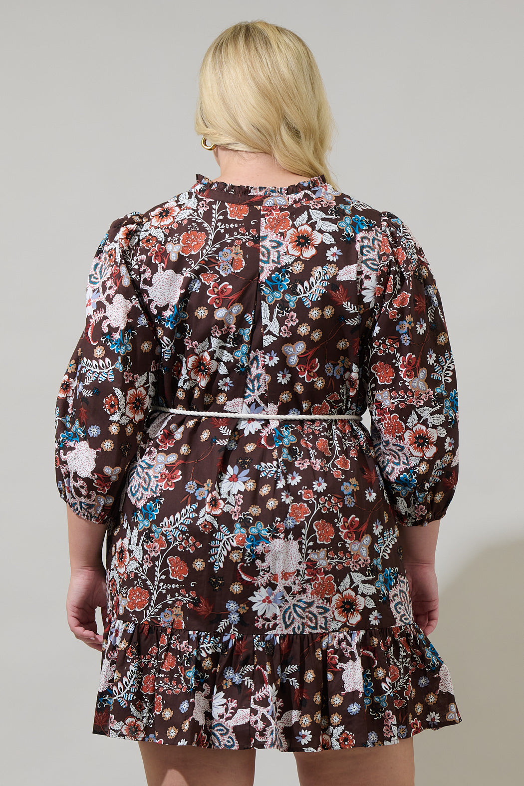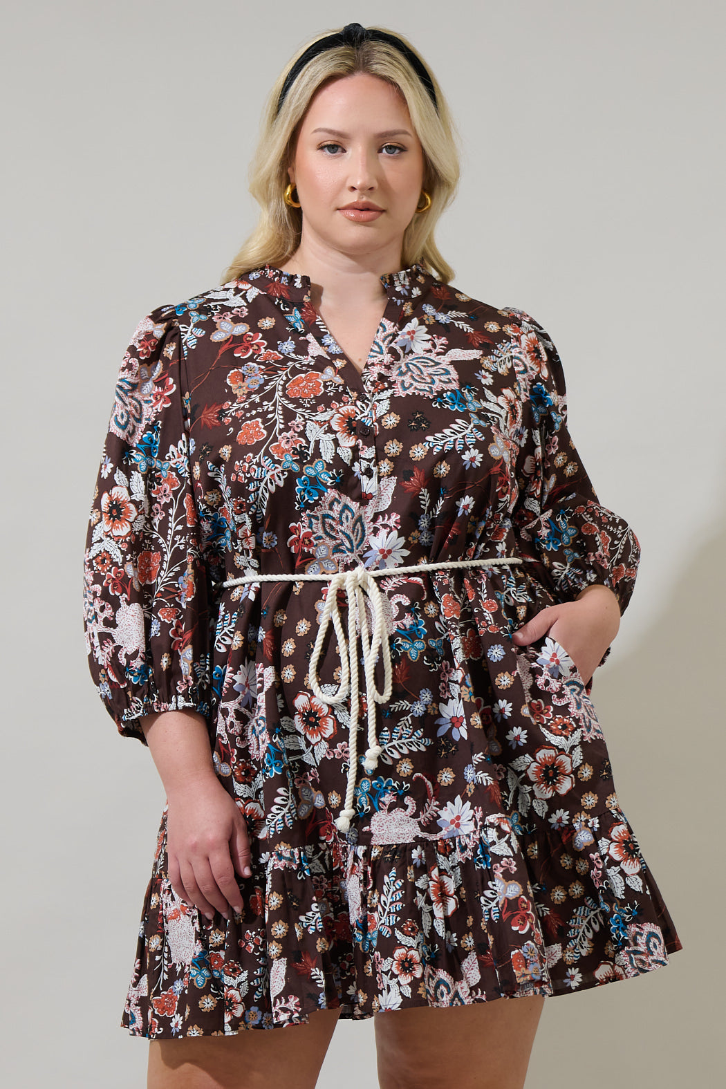 Journee Floral Jazlyn Split Neck Mini Dress Curve