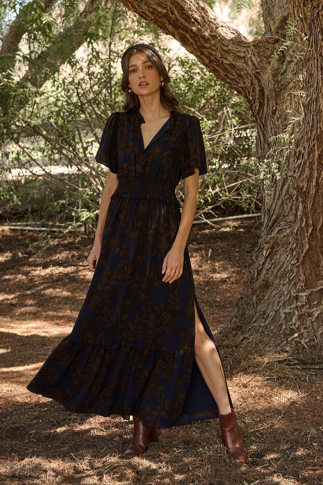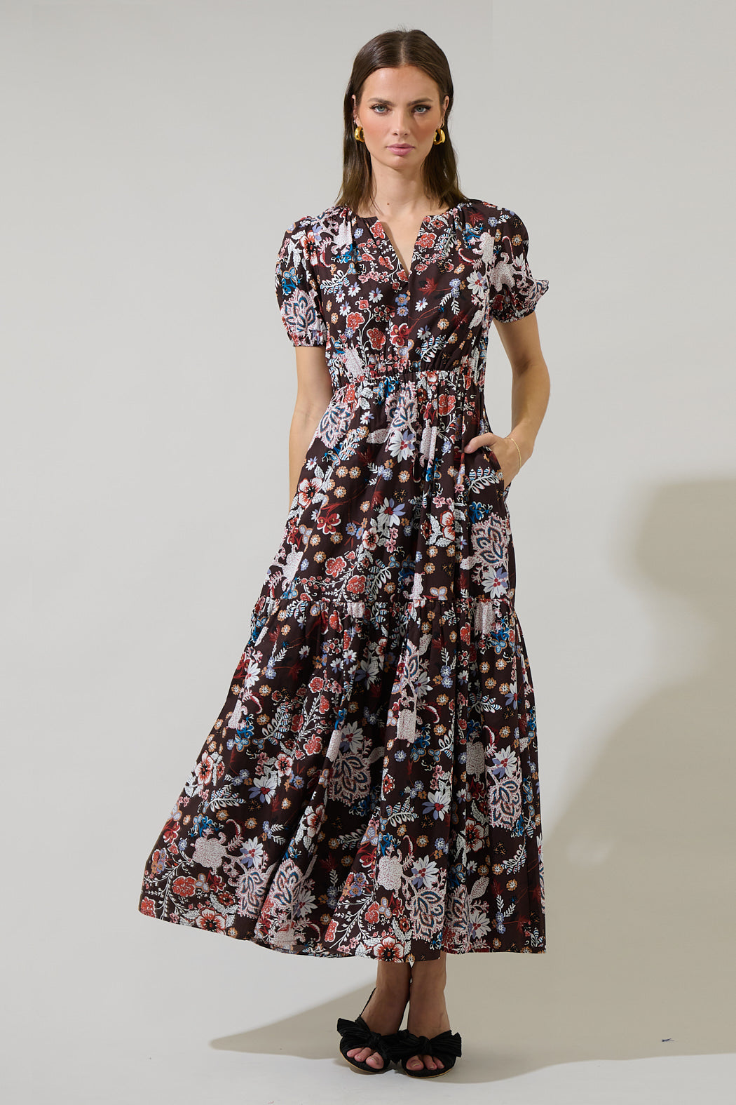 Tolleson Floral Valencia Split Neck Maxi Dress