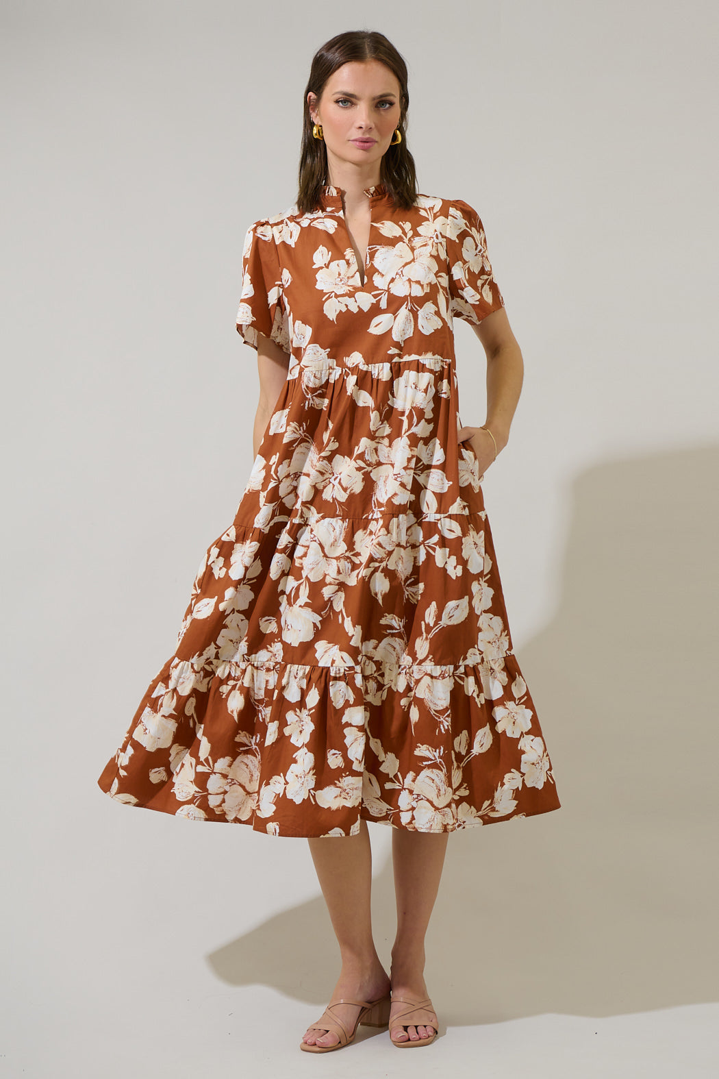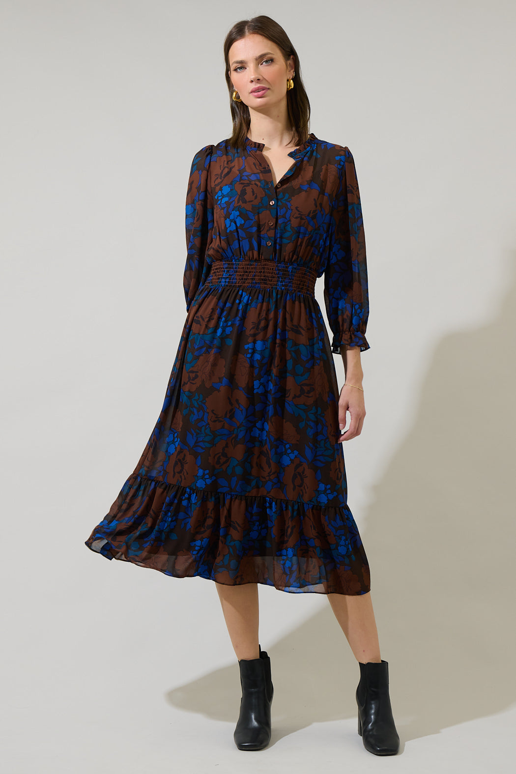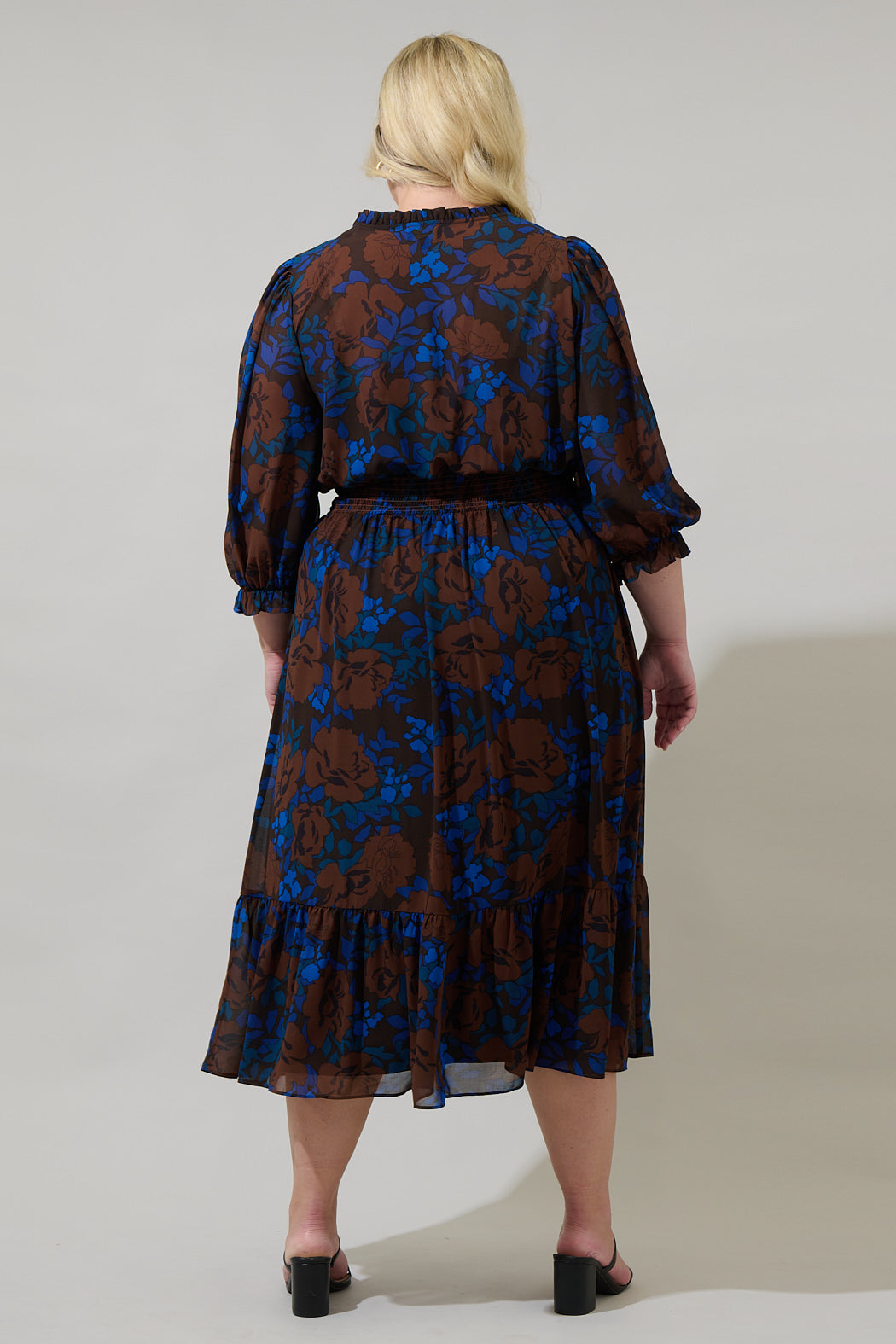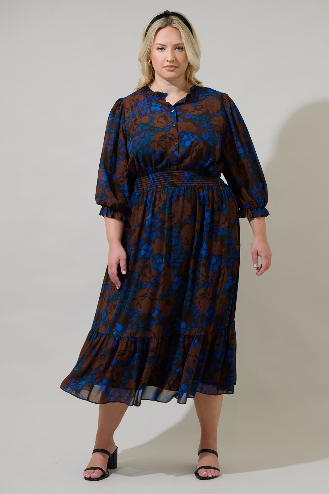 Lebanon Floral Irene Smocked Midi Dress Curve