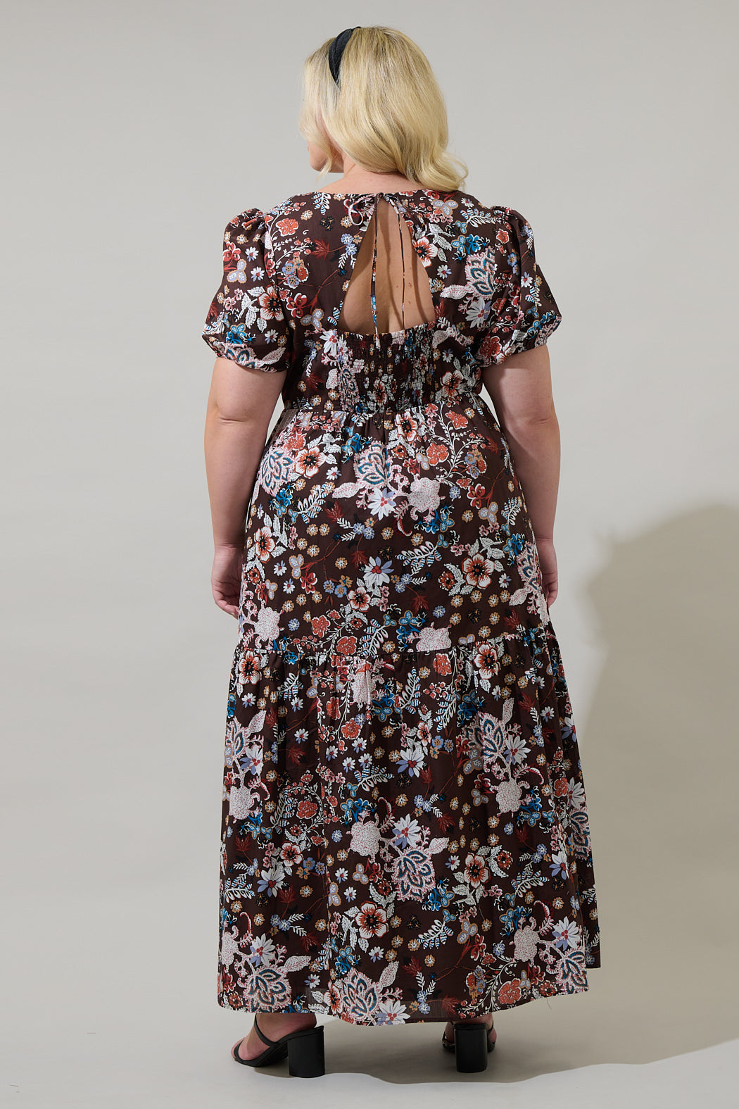Journee Floral Morty Puff Sleeve Maxi Dress Curve